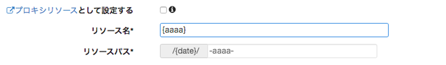 パラメータとして使用するために、{} で括る必要がありますが、僕はリソース名の欄でくくってしまい、思ったような結果になっていませんでした。正解は単純でリソースパスの欄で{} を使って括るだけです。APIについての理解が浅いので、「複数のデータは送れないのか、jsonか何かでくくってしまって送るのか?」と勘違いして進めてしまいました。