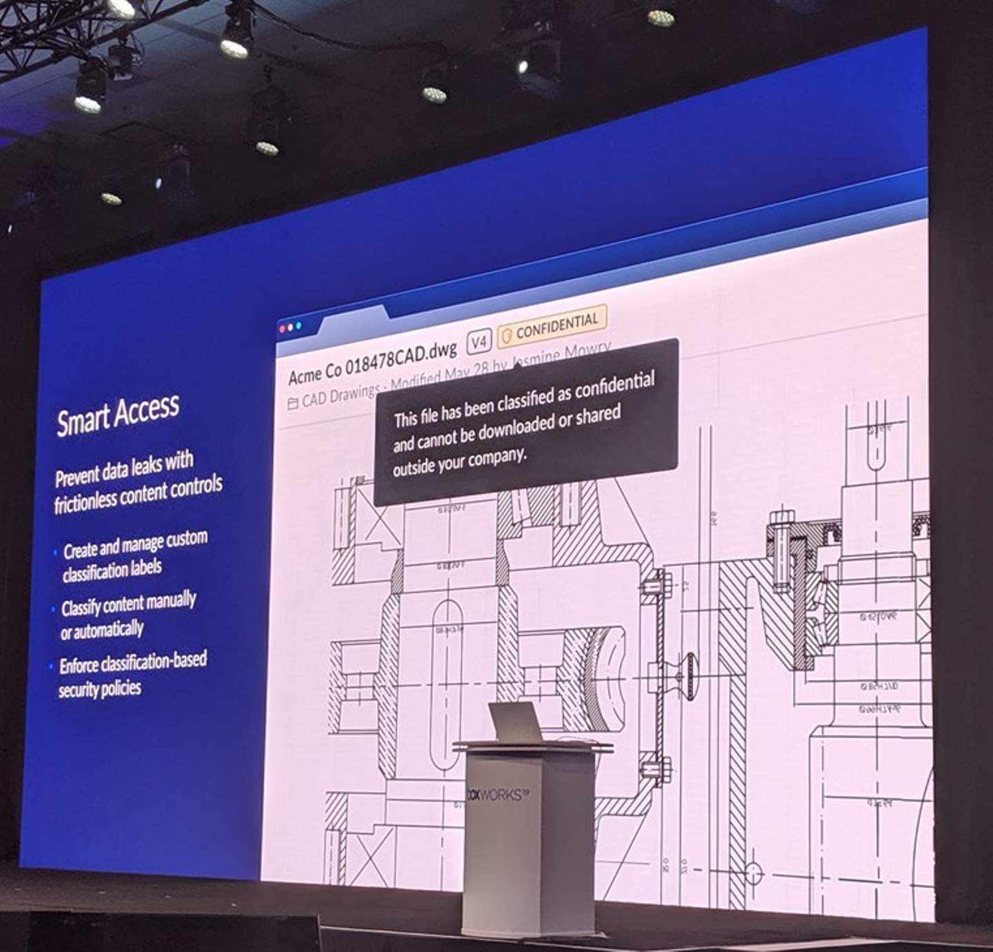 例えば、"CONFIDENTIAL"ラベルが付いている場合は、従業員は編集できるが、パートナー企業のメンバーなどは、編集、ダウンロードができないなどのコントールが可能です。