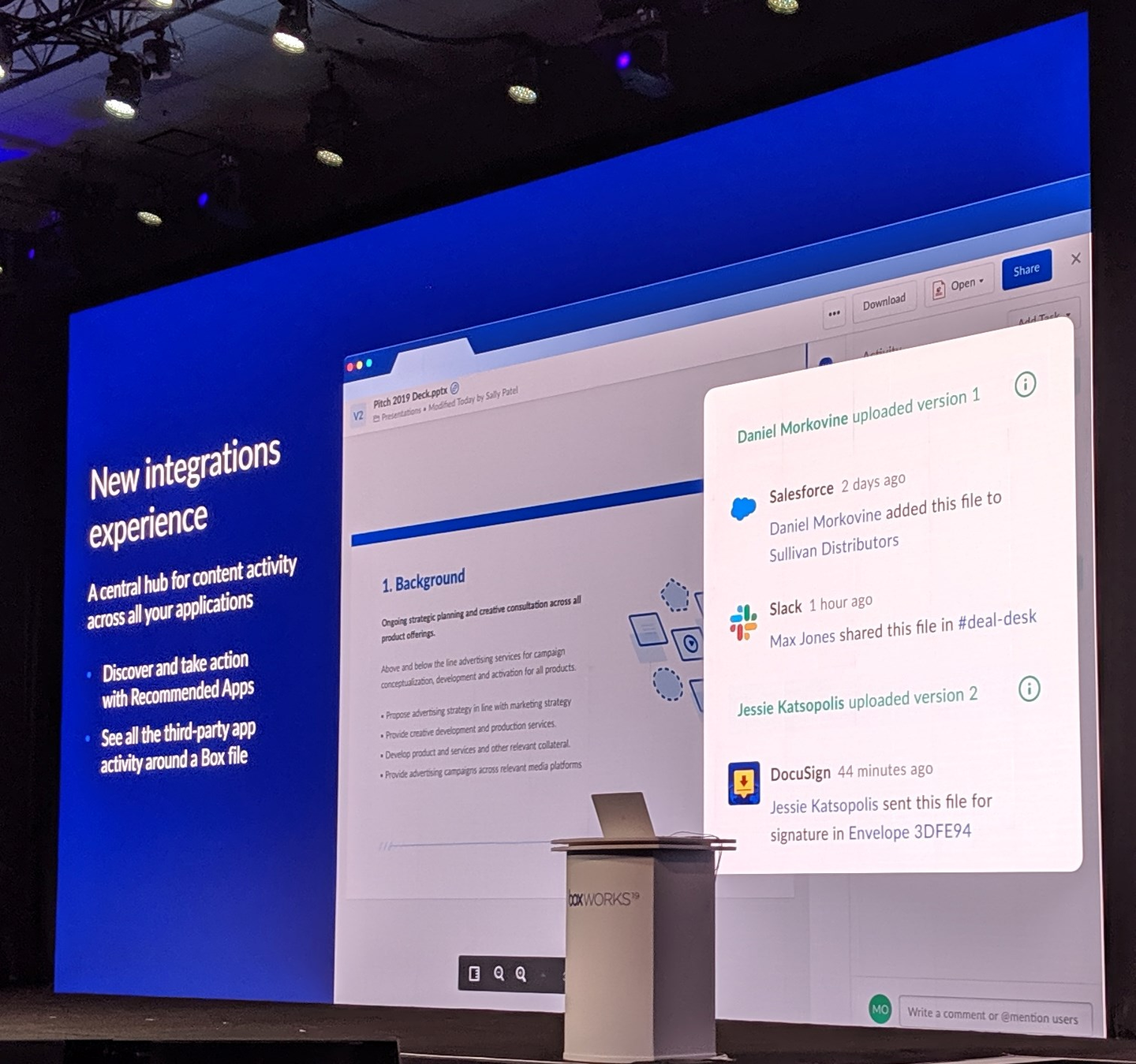 Box側からSlackなどに共有する機能が追加予定で、アクティビティもすべて記録されるとのことです。