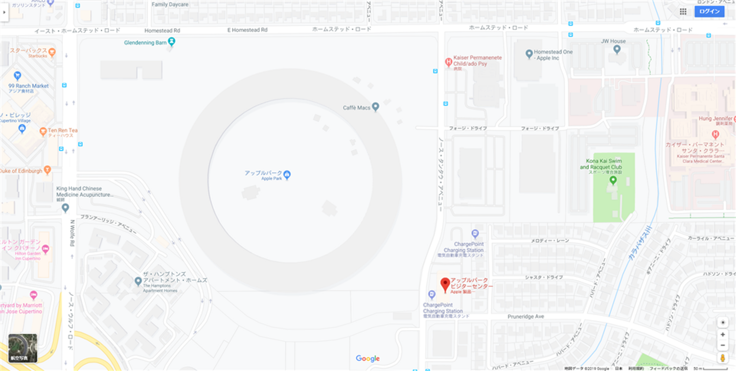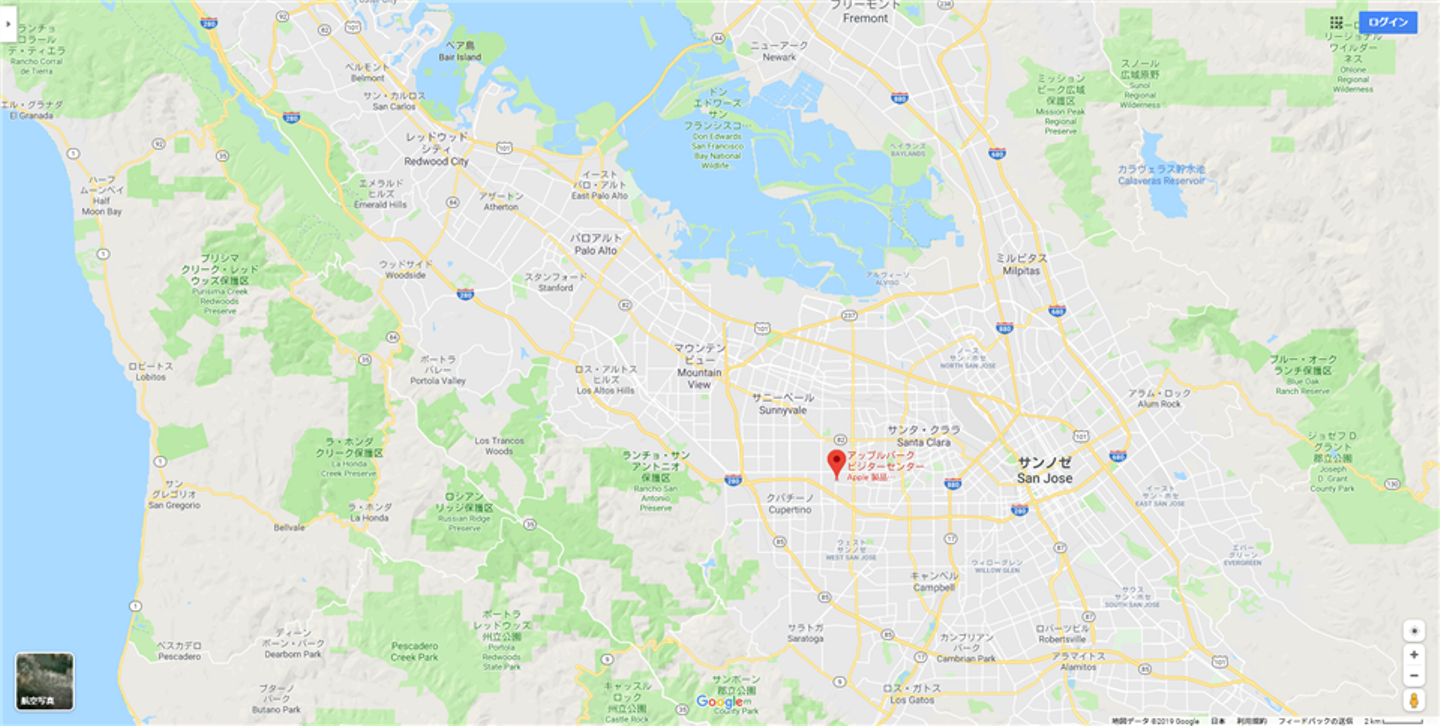 AppleParkは、サンフランシスコから南側の"クパチーノ"という場所にあります。
