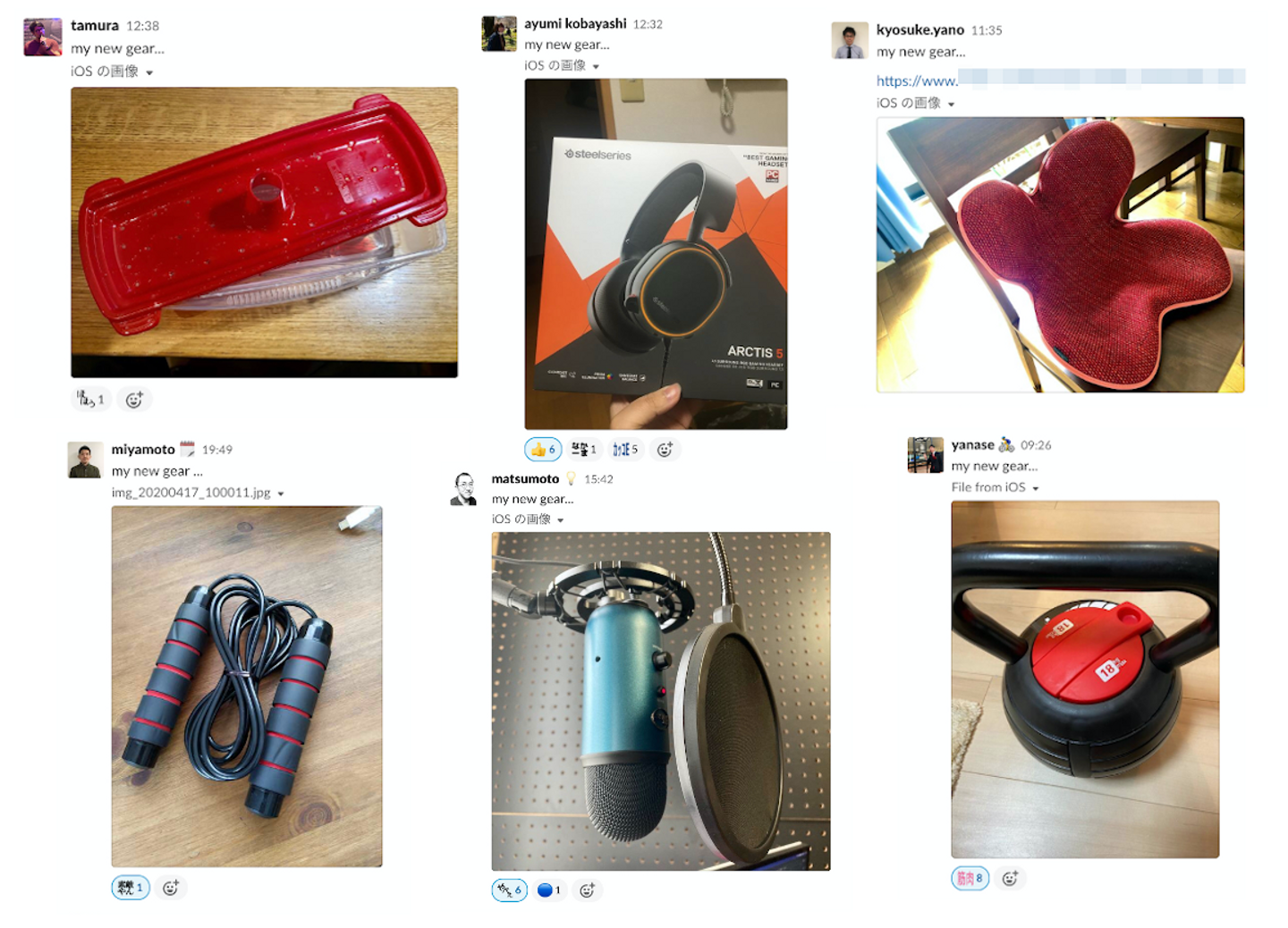 弊社Slackには #ext-my-new-gear という何か新しいモノを手に入れた際に写真つきで投稿して周りに自慢するだけのチャンネルがあるのですが、在宅勤務手当がつくようになってから実際に在宅勤務を快適にする系の投稿がとても増えました。増えたのは大きく3つの分類かなと思います。