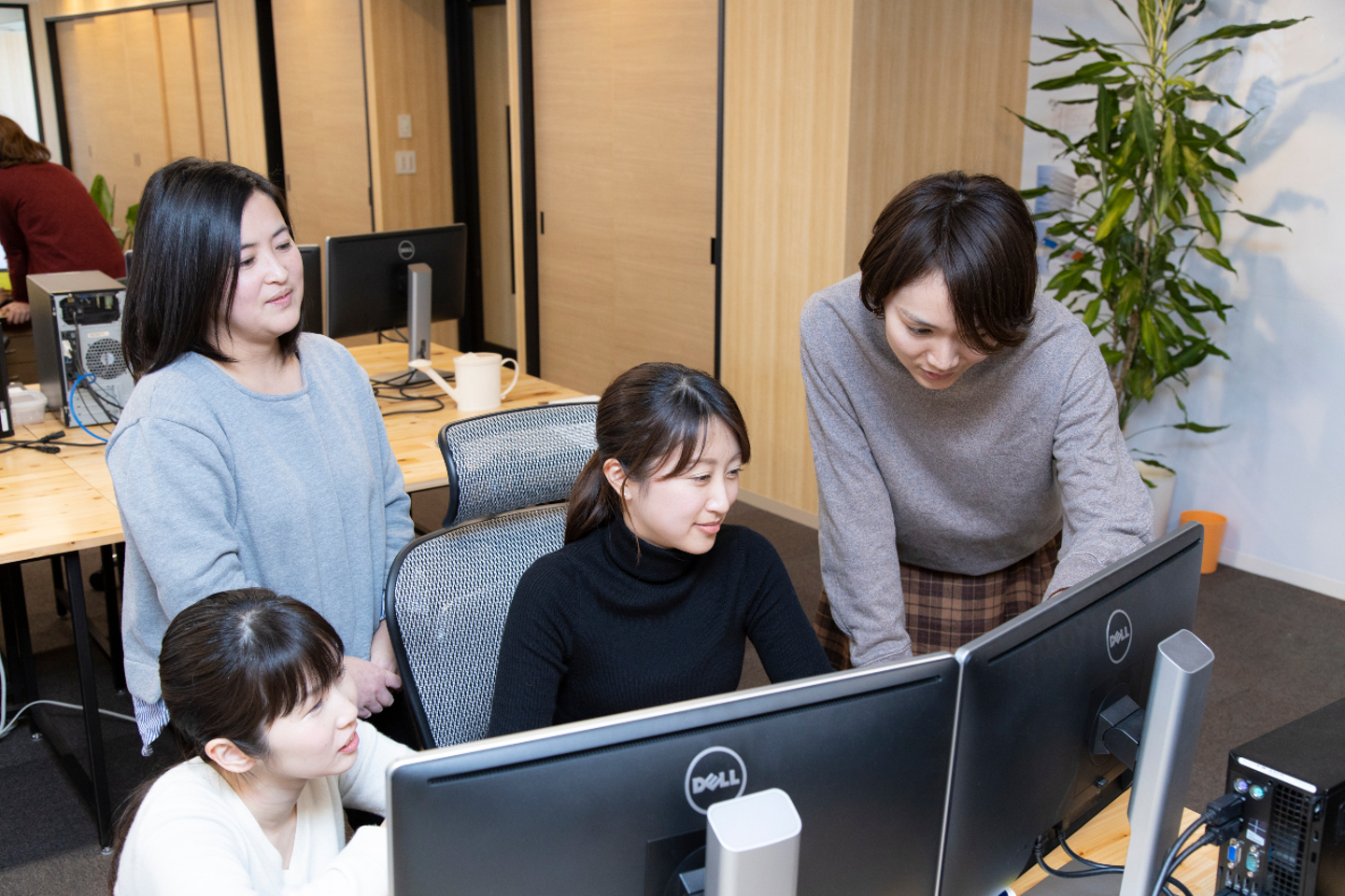 私たちの仲間は、社員やパート、在宅勤務など多様な勤務形態をとっています。私たちはお互いに協力し、支えあい、そして知恵を出し合いながら、互いの弱点をを補完して高いレベルの仕事を実現します。