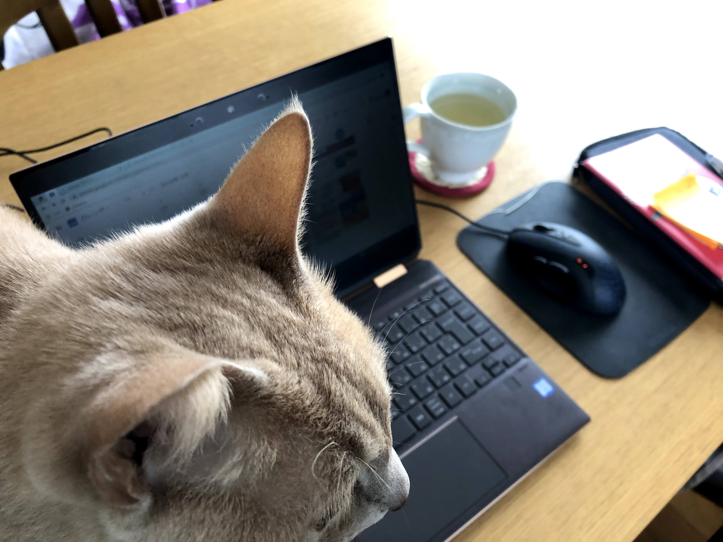 朝礼の準備を始めていると興味津々な猫がやってきました(笑) 我が家には5匹。