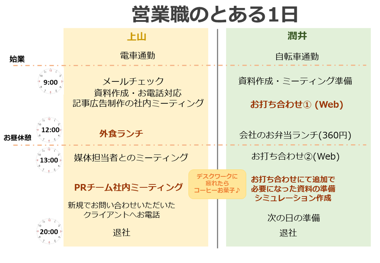 Shiftには運用職・営業職がありますが、営業だから運用職と比較して1日の働き方が大きく変わるということはないです。そこで少し営業ならではの要素をまとめると