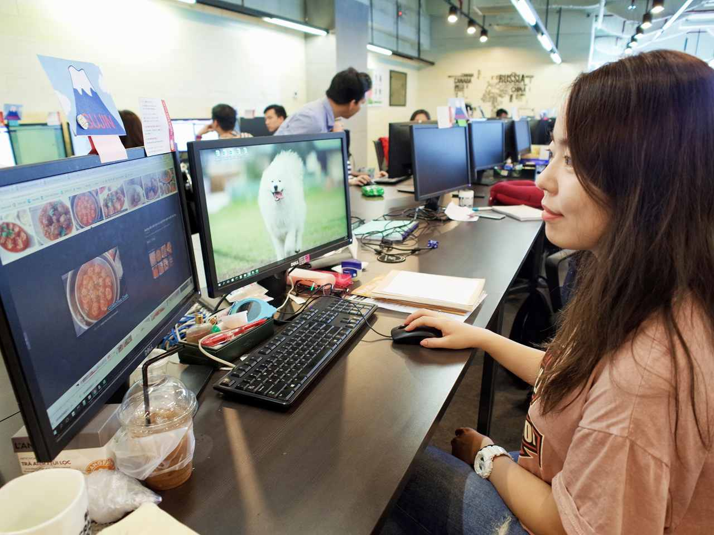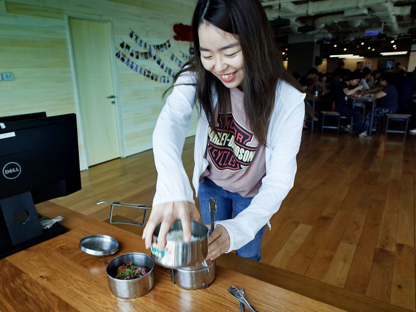 出社後、今日のメニューをチェックするSujin。