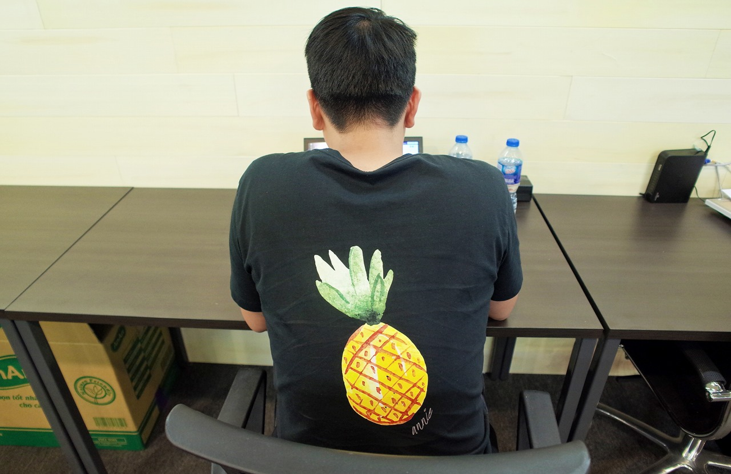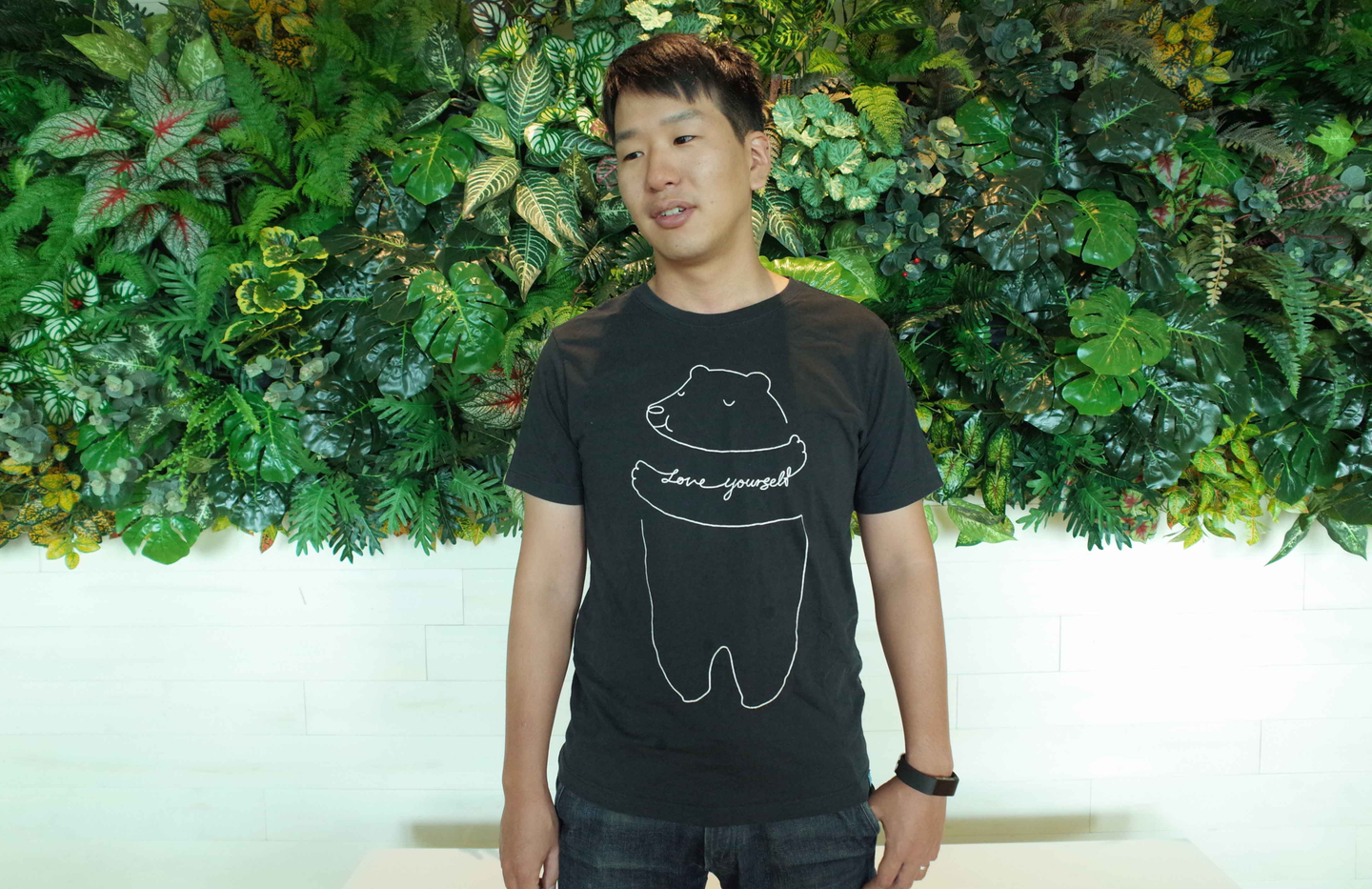 -毎日白か黒のTシャツを着ている。たまに目を引くロゴだったりする。