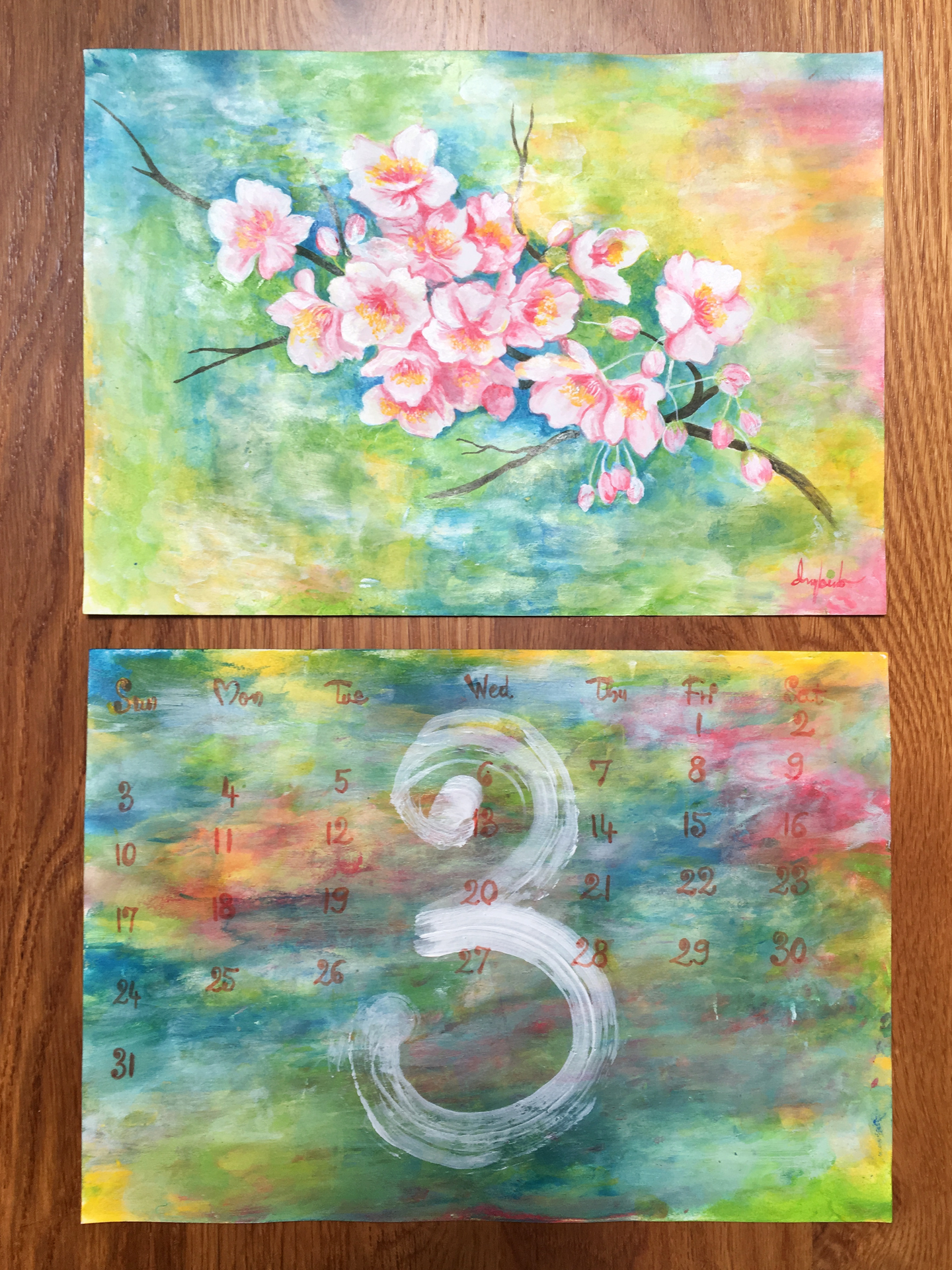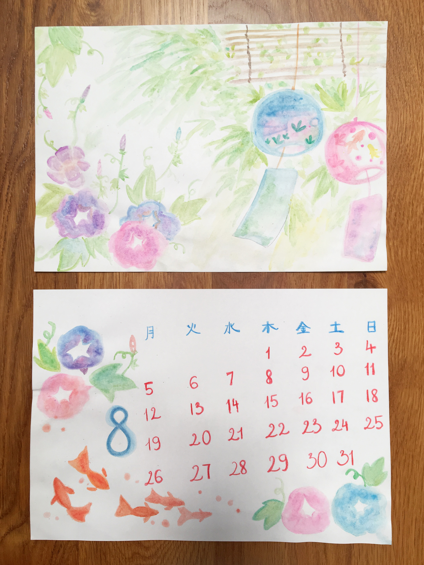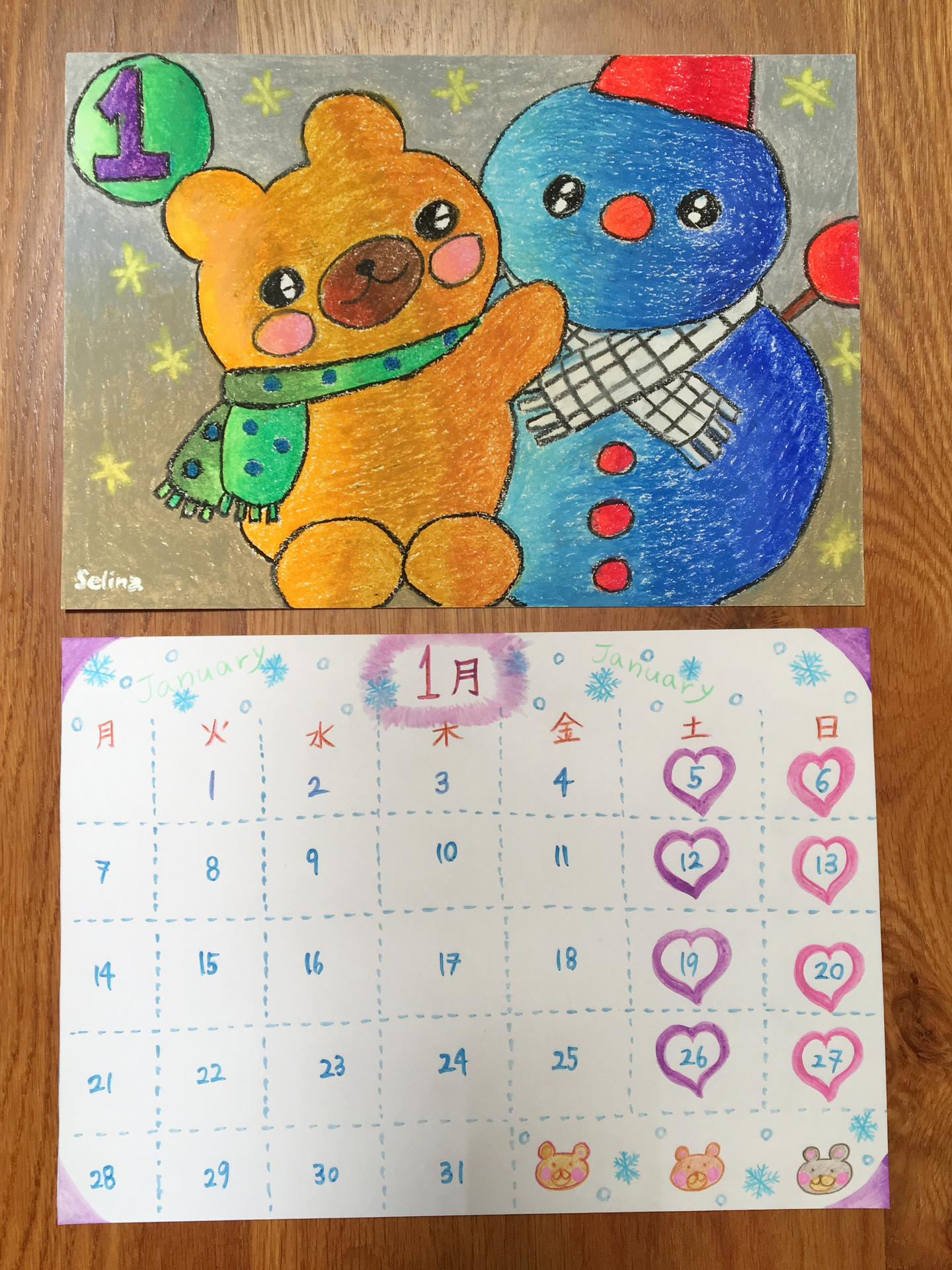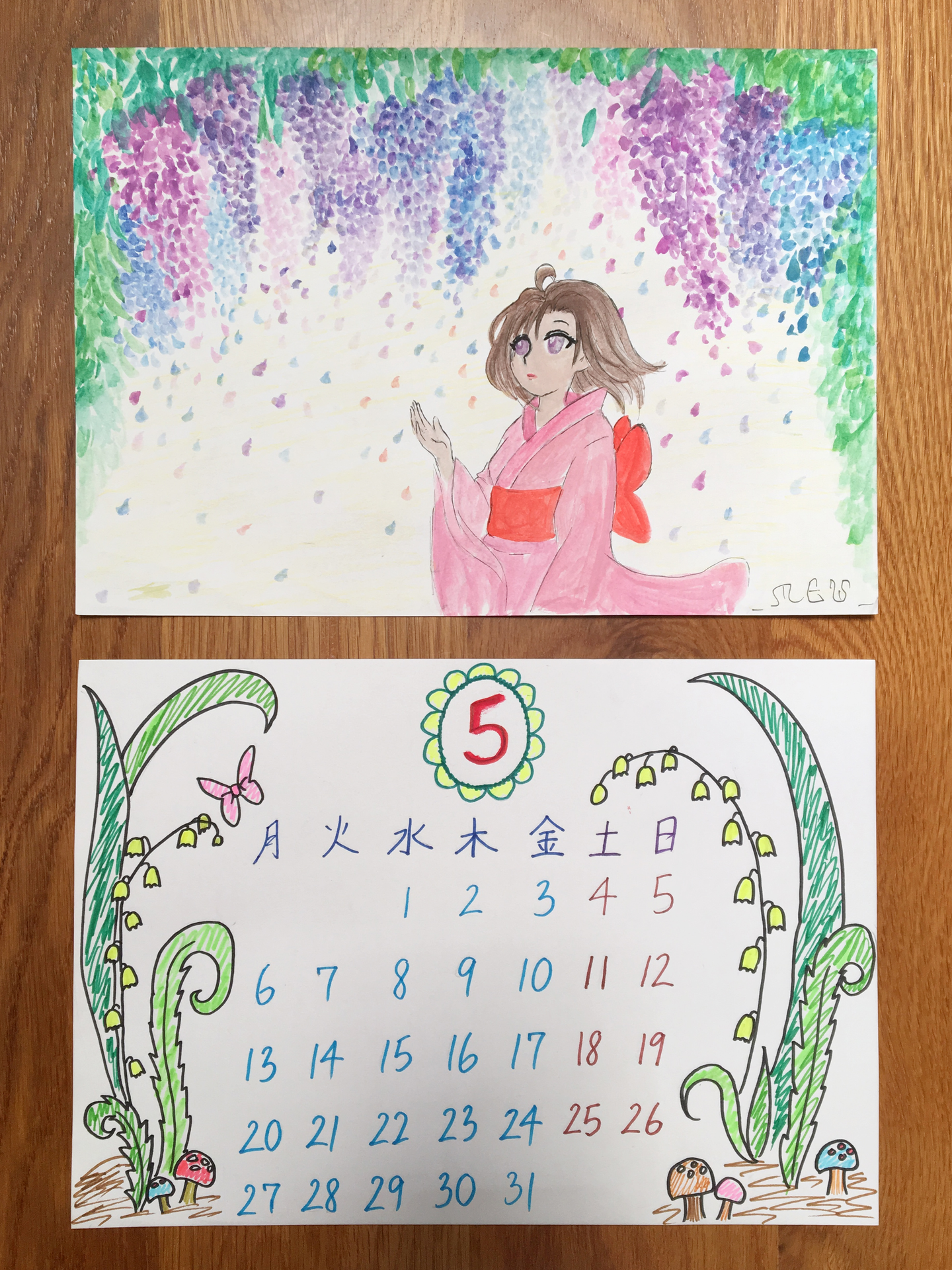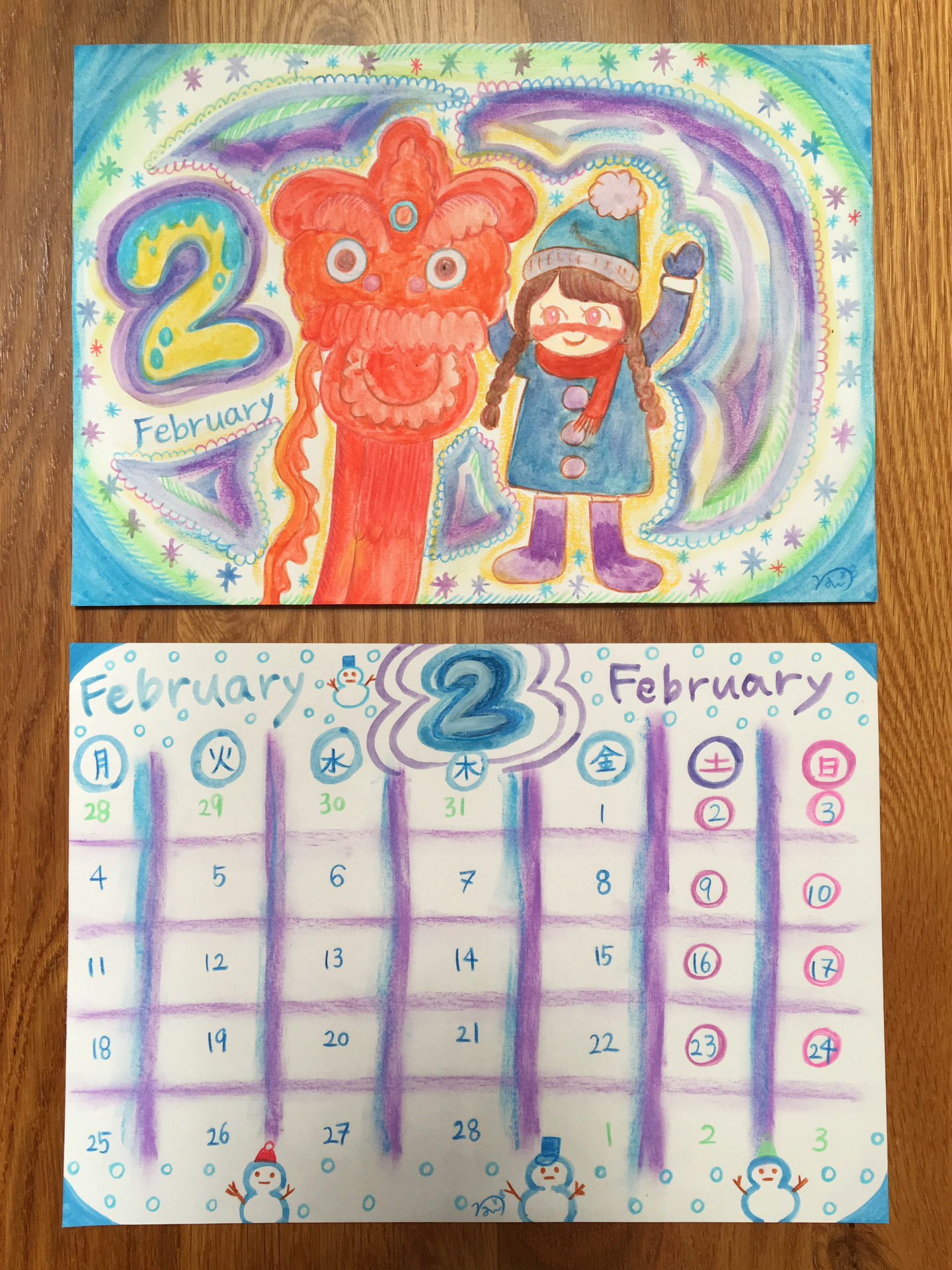 (日付の部分(下)は先に全て書き終えて手の空いていた私が描かせていただきました。)