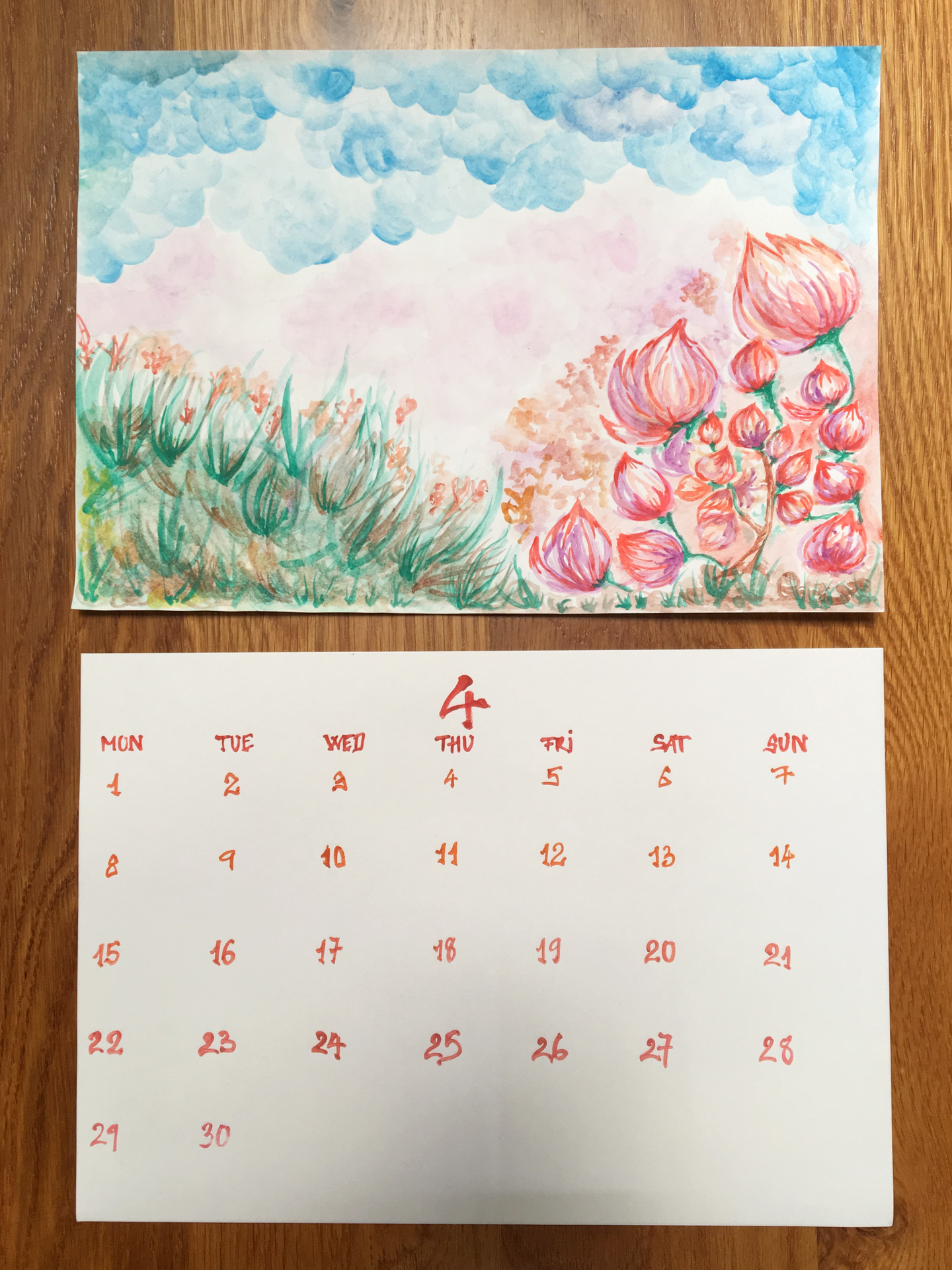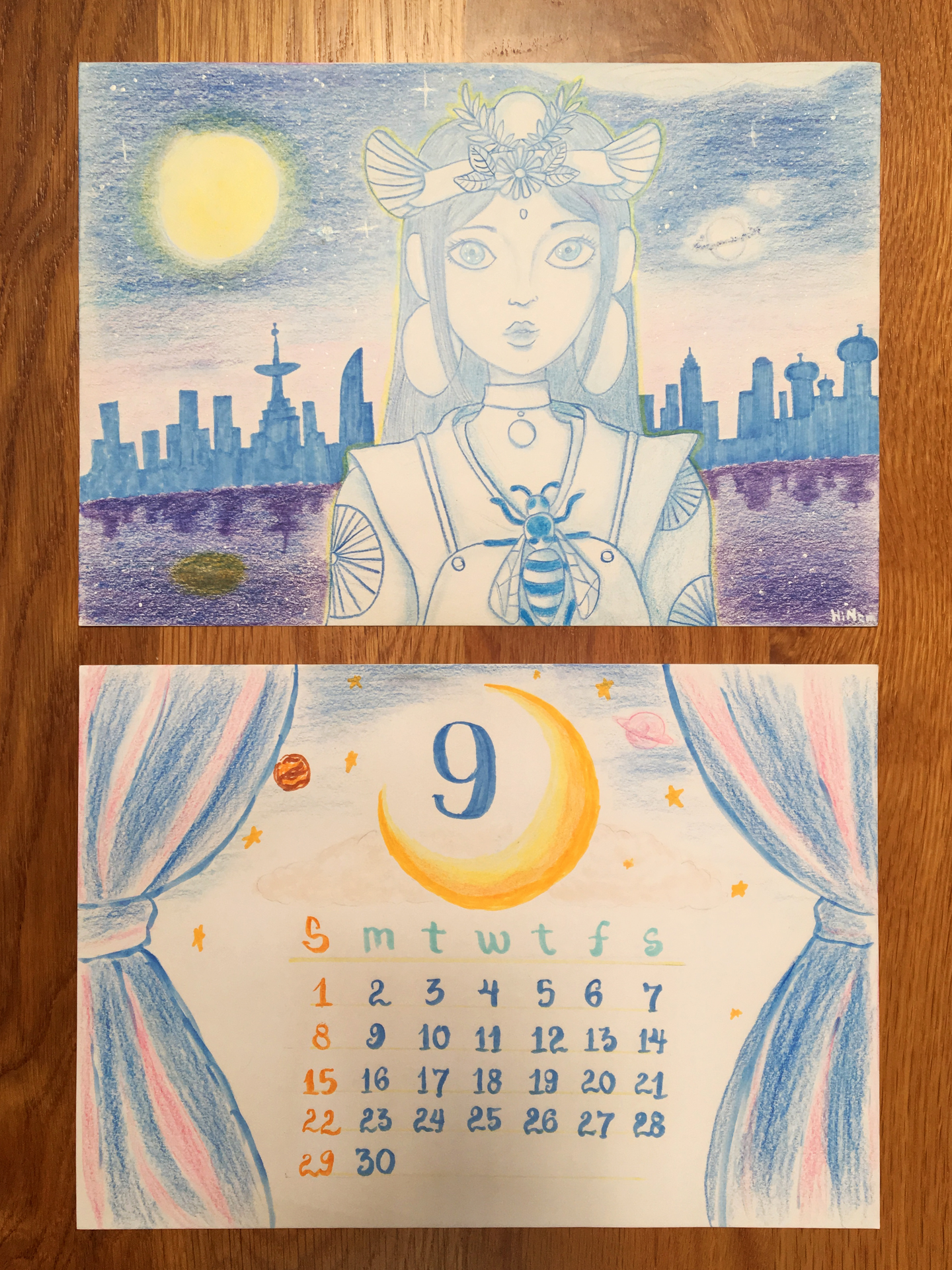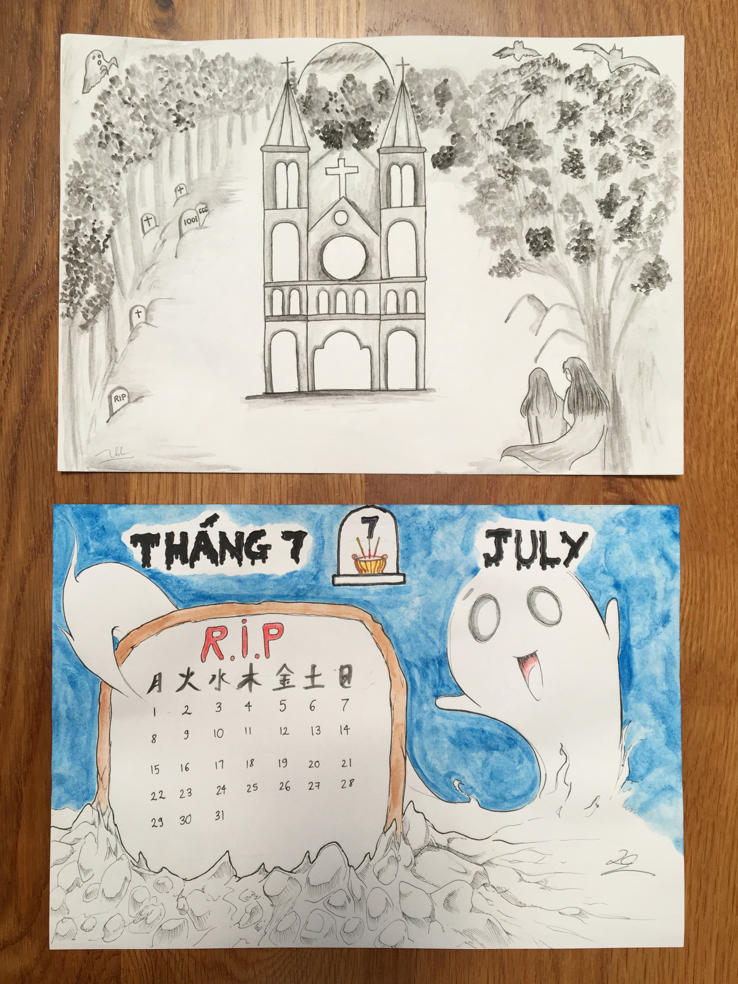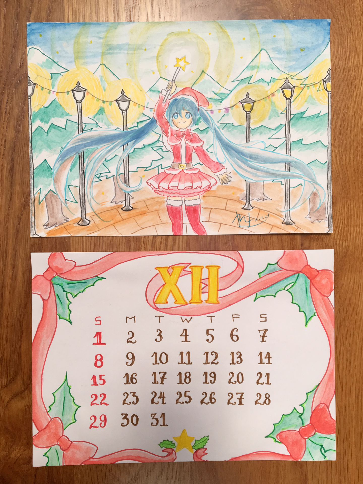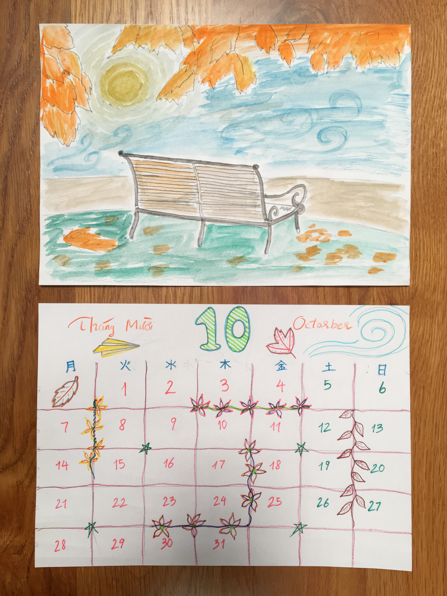 (日付の部分(下)は先に全て書き終えて手の空いていた私が描かせていただきました。)