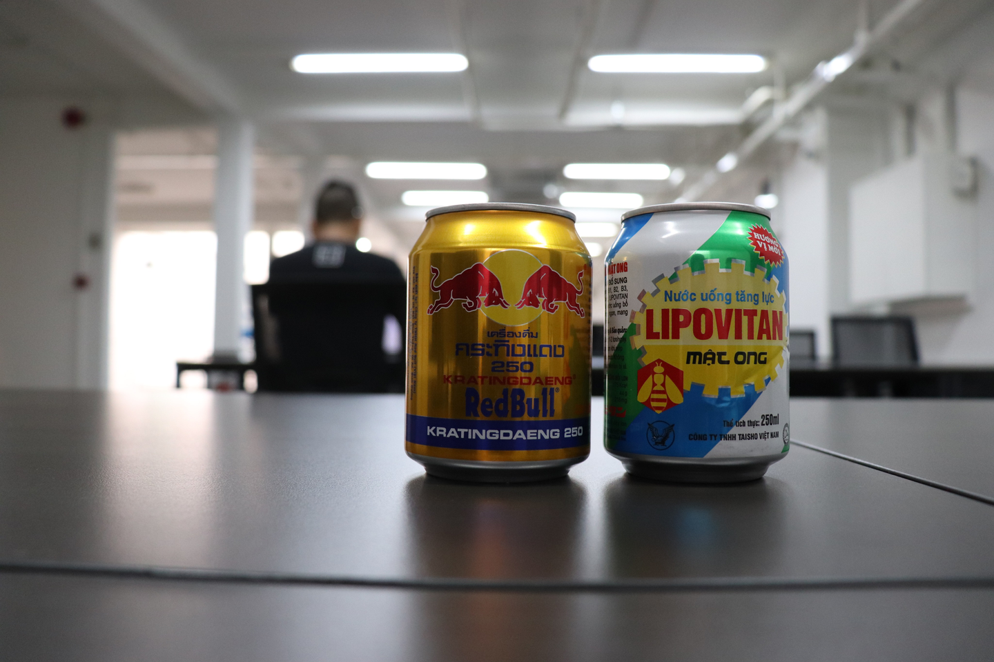 ちなみにこの見慣れない缶は海外版レッドブル、カフェイン量は80mg、タウリン1000mg。これだけのパワーを入れても再起動する気配なし!
