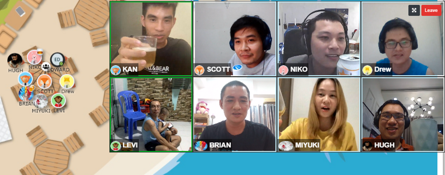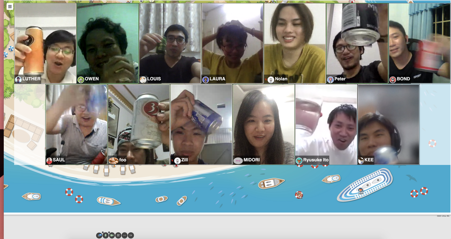 オンラインではありますが、みんなで集まってワイワイしてる感を味わいたいということで、バーチャル空間「oVice」を使ってのイベント開催。普段の業務では使用していないのですが、画面上の自分のアバターを操作することでオフィスにいる時のように近づいて話しかけることができるのは新鮮な体験でした。ちょっとしたゲーム感覚もあり、なかなかおもしろいですね。今回のイベントは、SHIFT ASIAのカルチャーをつかさどるPCD(People & Culture Development)部門のEventチームを筆頭に準備を進めてくれました。お疲れ様でした!