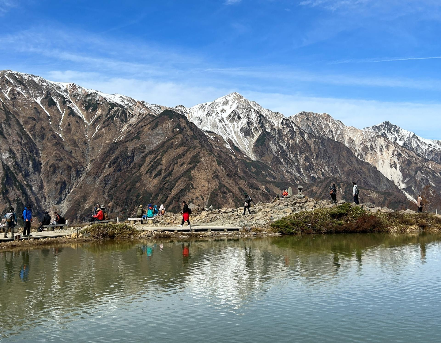 事前情報から想像していた登山より、ずっとキツいトレッキングを乗り越えた先では、雪化粧をした白馬連峰と、それを水面に映す八方池の見事な風景をが楽しめました!この季節に訪れないと見られない、紅葉と雪渓のコントラストなど、新たな白馬の魅力を堪能できました!