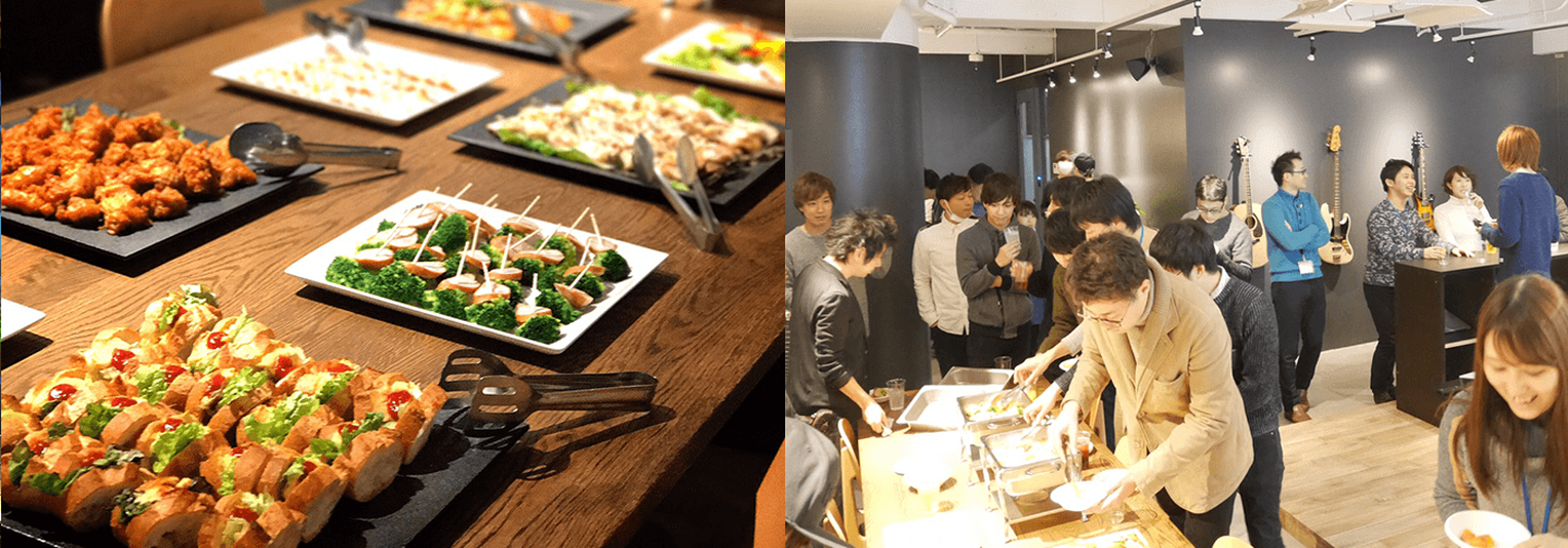 オフィス内の休憩スペースでくつろぎながらのパーティー