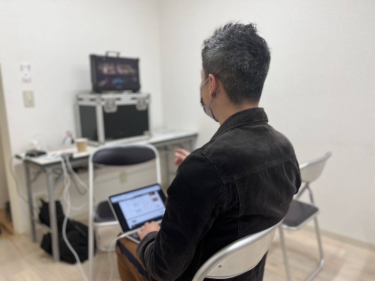 下の階の様子とは打って変わり、ここではマーケティング部のKさんと、広告代理店プロデューサーさん2名がスタンバイし、撮影した動画を入念にチェックしています。