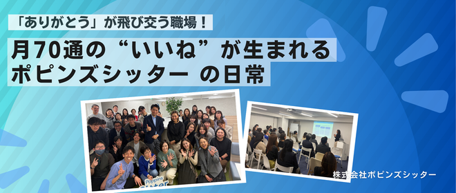 ポピンズシッターでは毎月「いいね大賞」を発表しています。日々の業務の中で見た、誰かの仕事や気遣い、言葉がけ、活躍、感謝の気持ちなどをいつでも「ひとことフォーム」で送信。月末に集計し、その月の「いいね大賞」を発表します。どんな「いいね」が届くのかを探ってみると、ポピンズシッターで評価・信頼される人の人物像が見えてくるかもしれません。「いいね」は毎月70通!こんな「いいね」が大賞を受賞しています毎月の「いいね」数は平均して約70通。この数字から見ても、社内みんなが日常的に「いいね」を自然と送り合っていることがわかります。本記事では、最近の「いいね大賞」受賞コメントを少しだけご紹介します。こん...