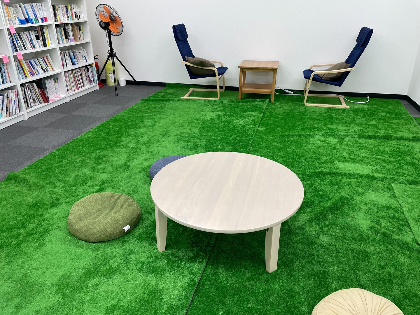 スナックミーのオフィスには、芝生が敷いているスペースがあります。