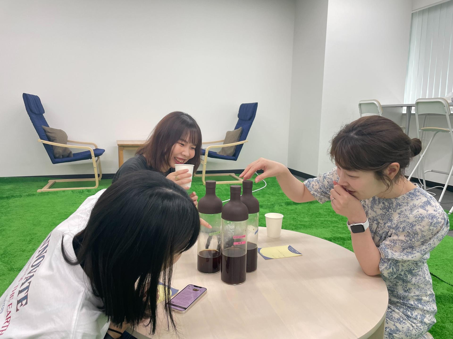 この芝生スペースで、3種類のコーヒーを味くらべ。