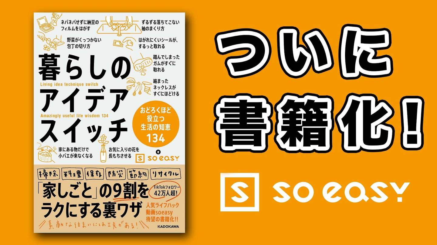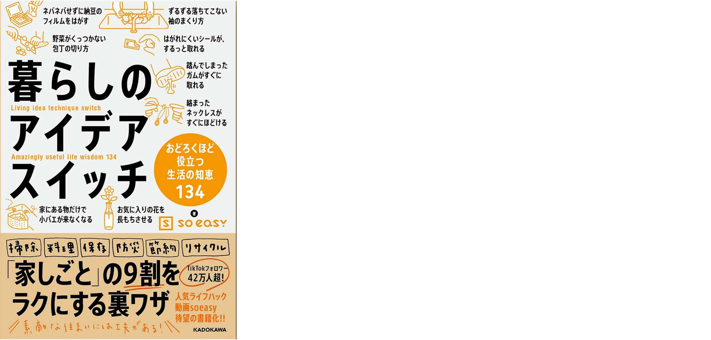 株式会社soeasyでは、9月16日(木)に、初書籍『暮らしのアイデアスイッチ おどろくほど役立つ生活の知恵134』(株式会社KADOKAWA)を発売しました。
