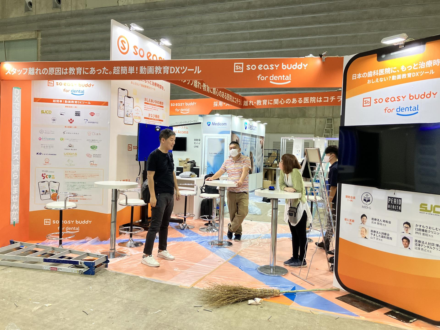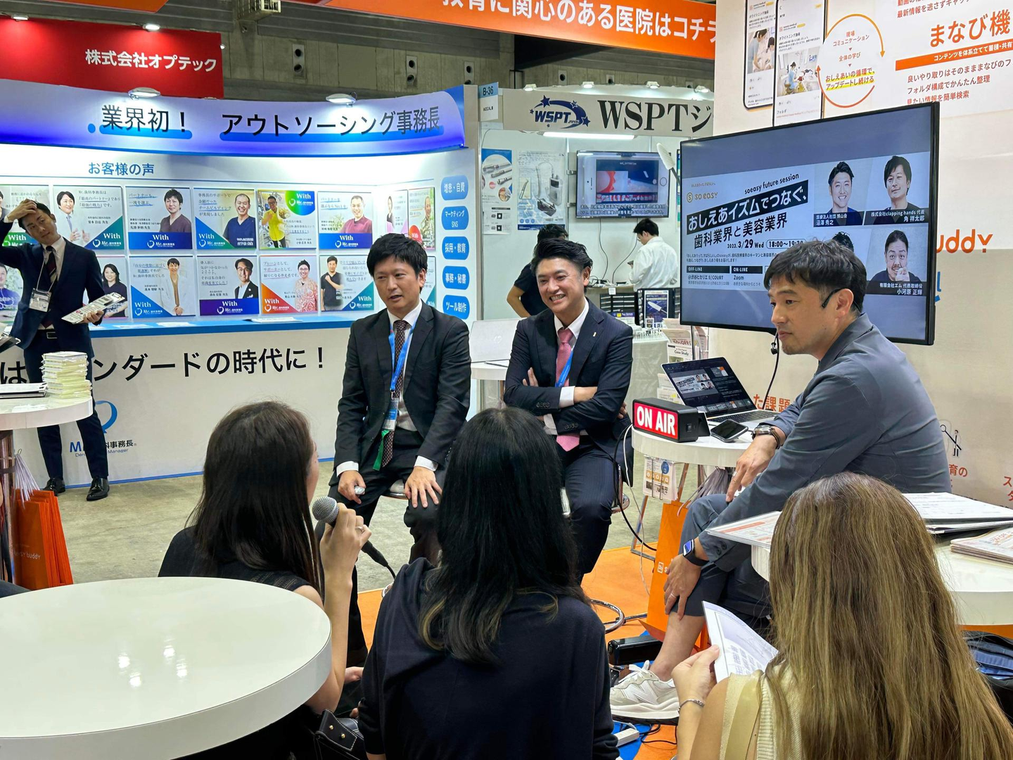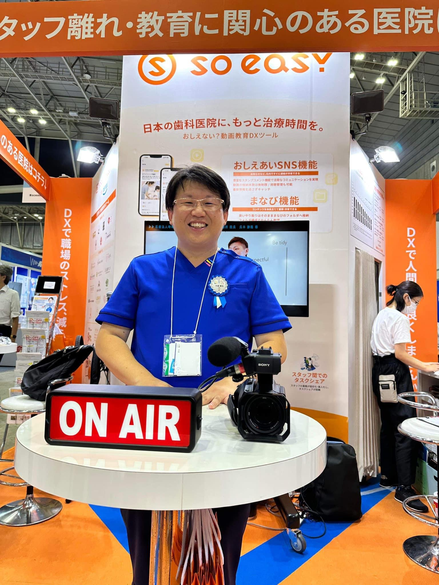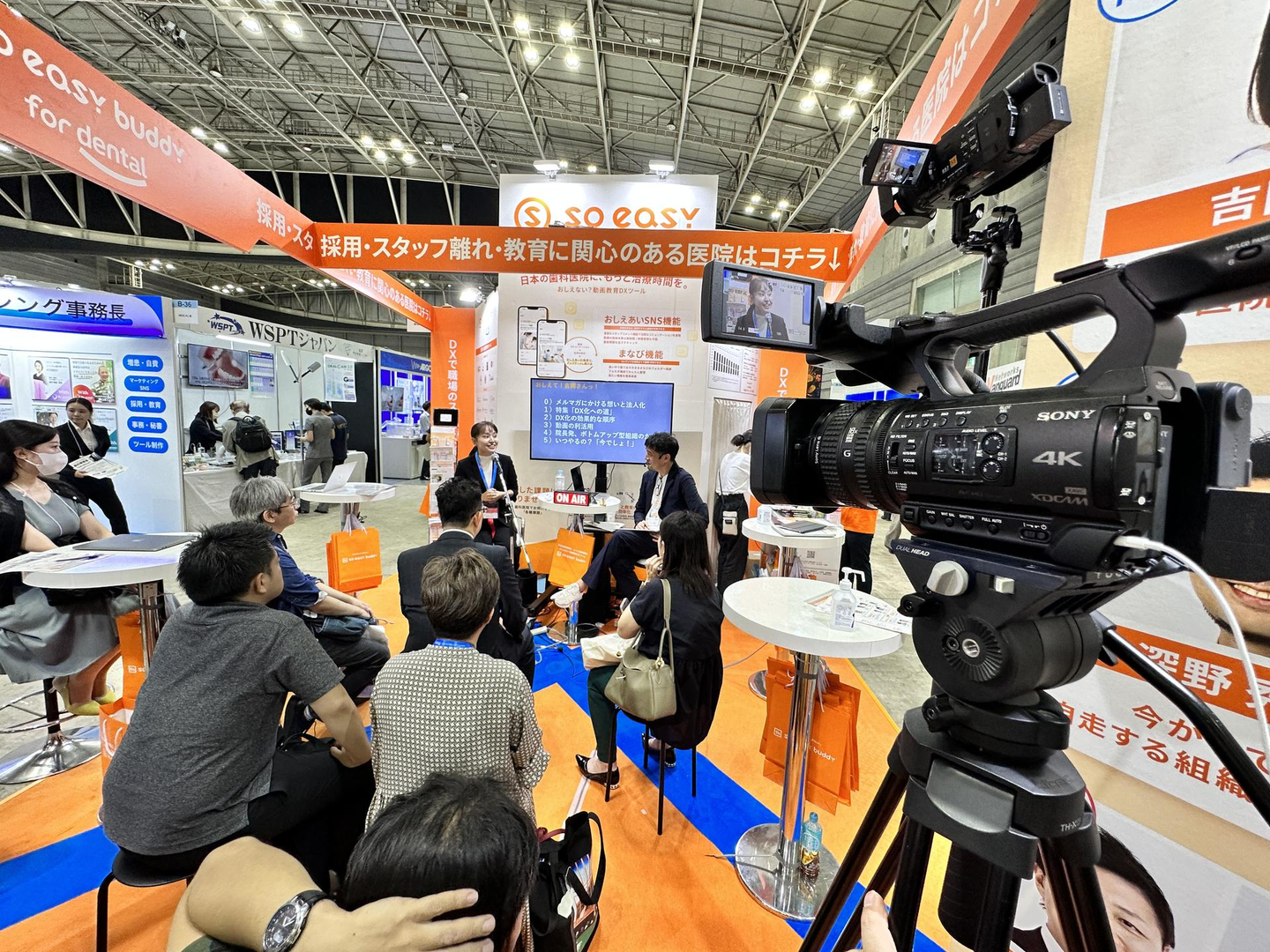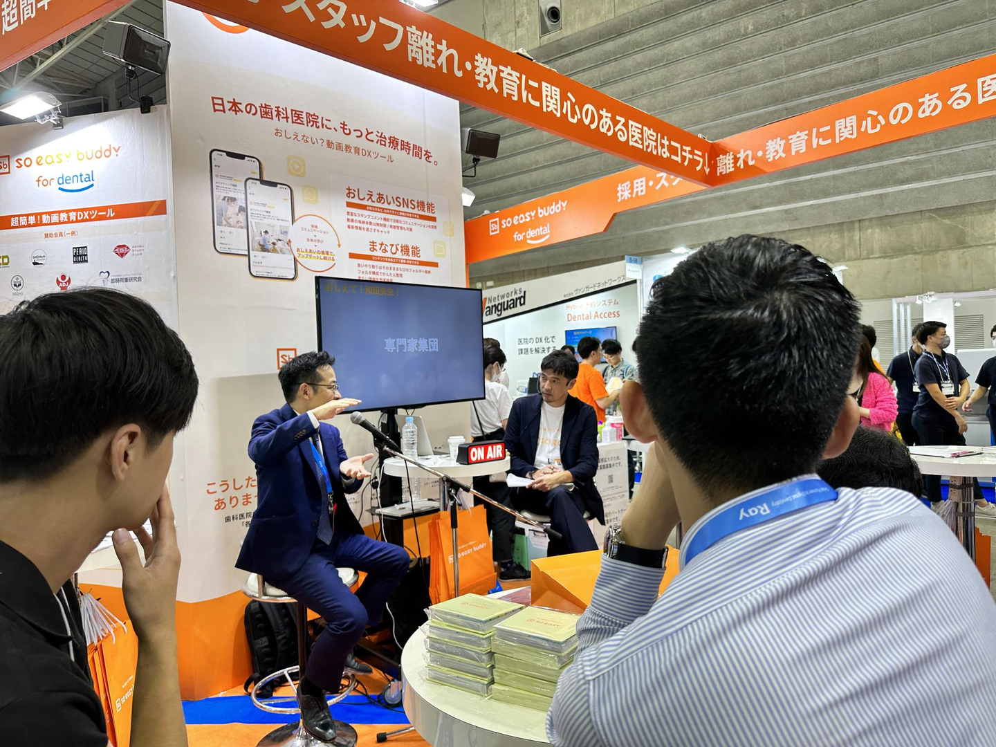 soeasyブースでは、業界の様々な方々にご登壇いただき、公開収録スタジオに見立て「soeasy buddy」の魅力や、歯科業界のDX事情、未来展望などなど、たくさんの方々にお話いただき、そしてたくさんの方々にご視聴いただきました。