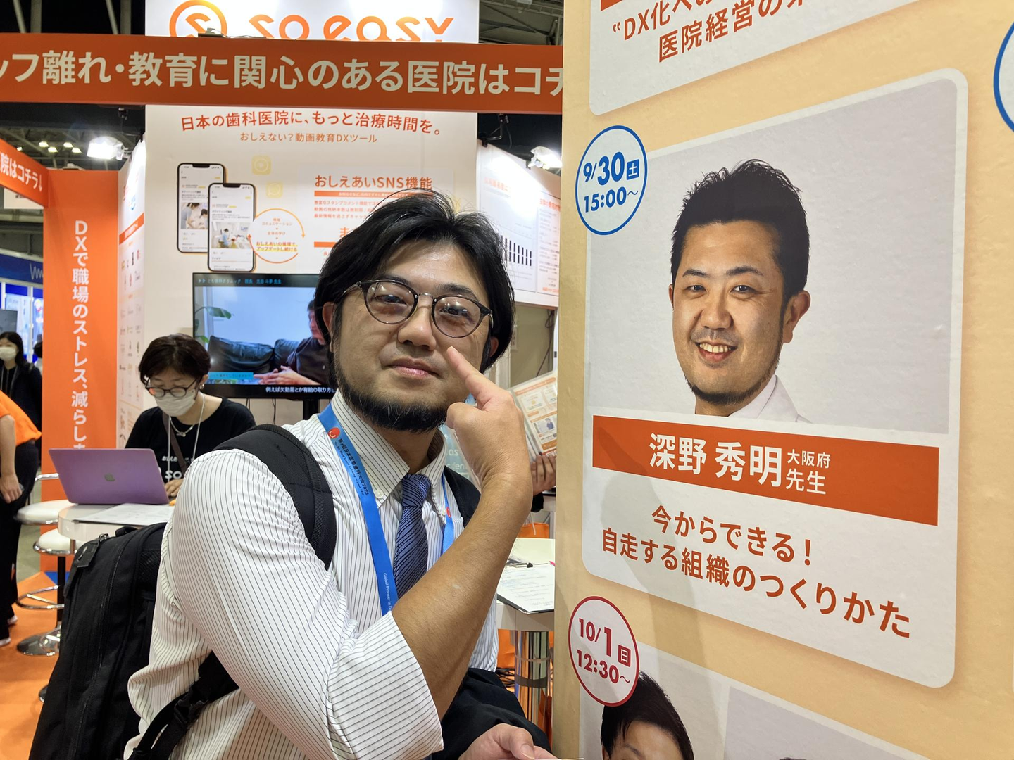 を担当くださった中原先生が獅子奮迅のご活躍をくださり、大盛況だったD会場でのご講演後、即座にsoeasyブースに立ち寄ってくださり、たくさんの方々との対話の場を一気に創出くださいました。