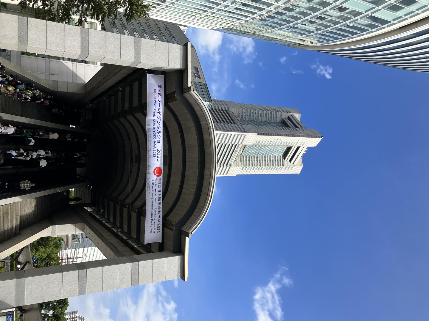 当日は、少し暑さが和らぐ秋の晴天に恵まれ、横浜の街も光り輝き、ワールドデンタルショーの横断幕も堂々のお披露目です!