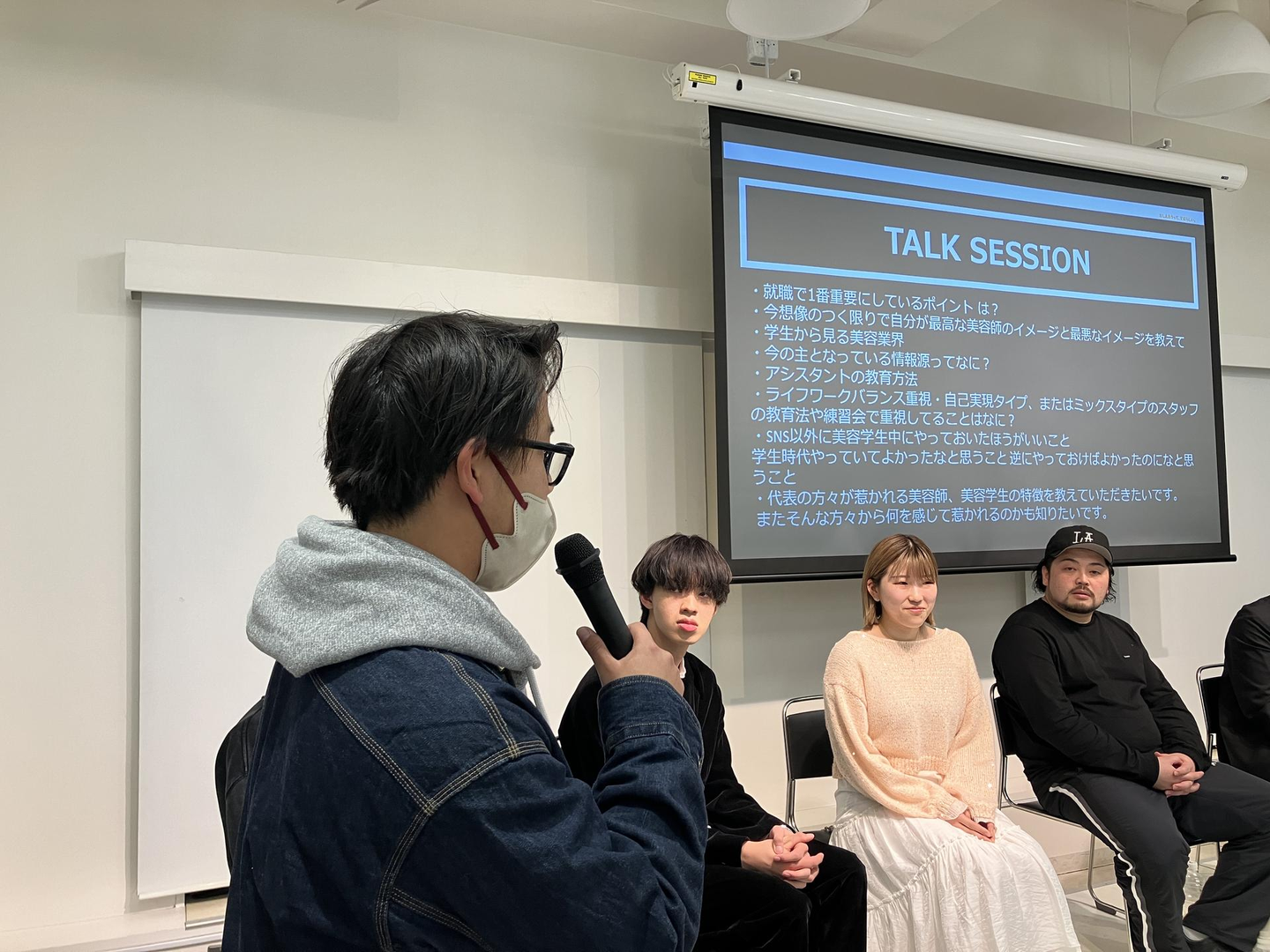 (ゲストの周りを美容学生が囲み、対話していきます)