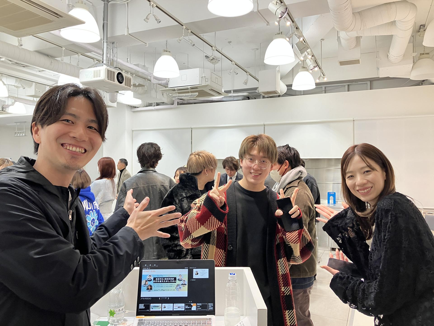 学生さんが持つ、若々しくて純粋なエネルギーが、空間に満ちたところで、いよいよ本会のスタートです!今回はfifthのCMO木村允人さん、JIL BLAN代表取締役の和泉貴大さん、tida smile代表取締役あまやんこと栄田光平さんをゲストにお招きし、まずは自己紹介をいただきました。