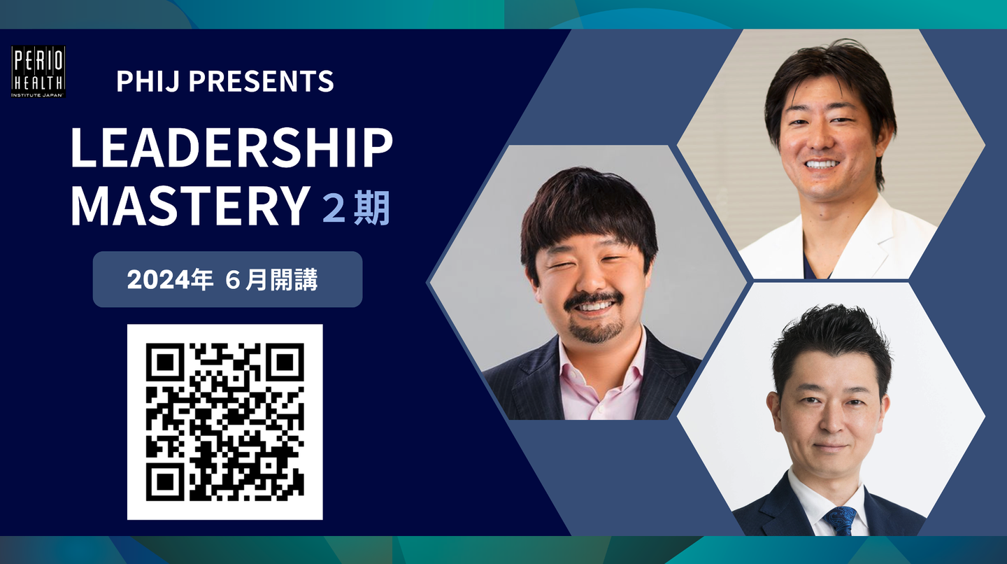 会の最後には、LEADERSHIP MASTERYの告知として、Well-being Dental Clinic 理事長園延先生と、PHIJファウンダーのお一人宮本先生、エスコートでも登場いただいた栗林先生に再登場いただき、リーダーシッププログラムの価値と、その魅力について大いに語っていただきました。