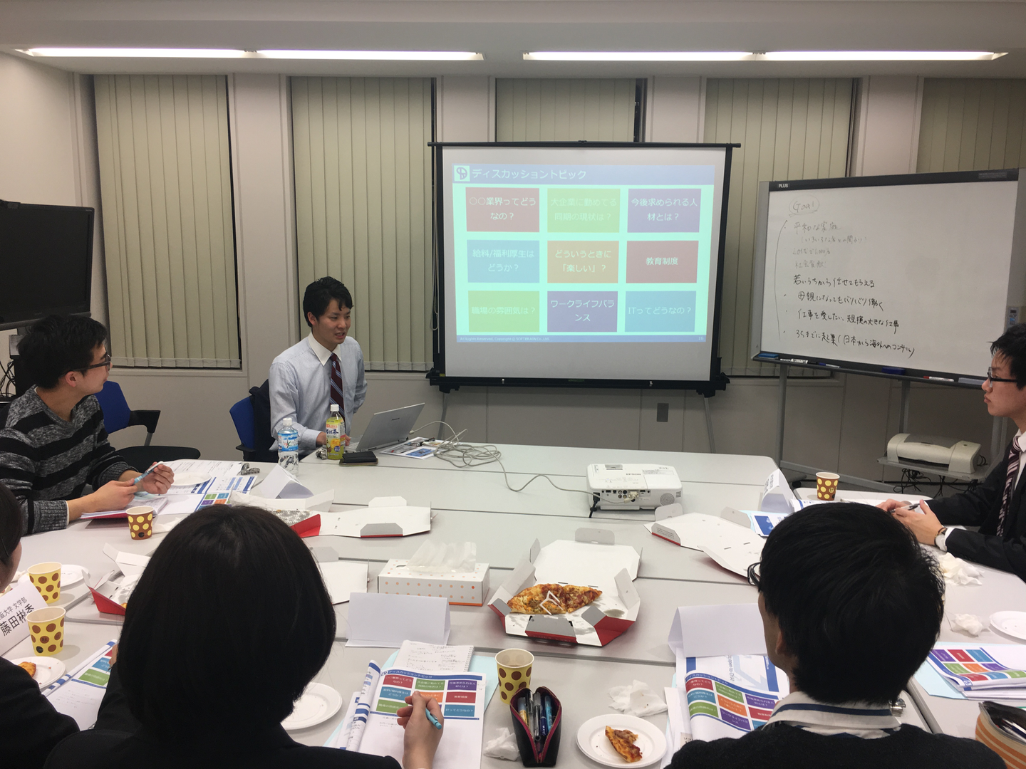 ※PIZZA談会:人事・社員とピザを食べながら会社説明を聞いたり、ざっくばらんに質問したりする、1~2時間程度のフランクな座談会。実際の様子がこちら↓