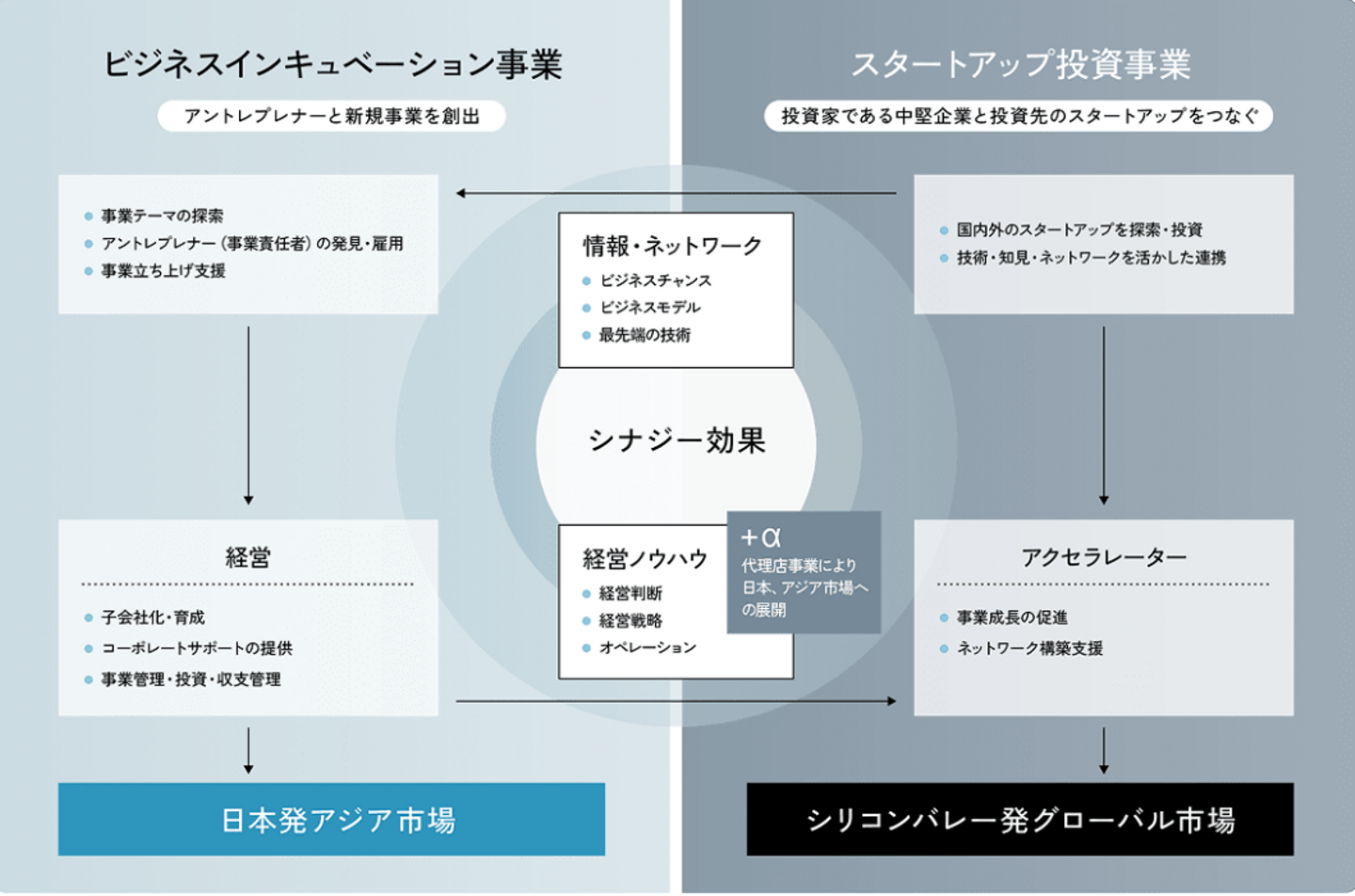 日本の中堅企業と世界のスタートアップをつなぎ、新規事業の創出支援を通じてより良い社会を創り出すため、新たにシリコンバレーをはじめとするグローバルスタートアップ及びそれらに投資するベンチャーキャピタルファンドへの投資を実施します。VCファンドが持つグローバルなスタートアップのネットワークにアクセスすることにより、優良なスタートアップとの出会いの機会を広げ、スタートアップへの直接投資も実行してまいります。