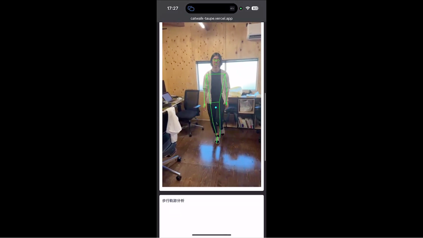 姿勢判定アプリ「キャットウォーク」を開発。カメラで人の歩き方を撮影し、重心がぶれない「キャットウォーク」と不安定な「酔歩」を判定。キャットウォーク判定で顔が猫っぽく、酔歩でビールのマークが表示される遊び心も満載。高齢者ケアや飲酒運転判定など、実用性も期待できる発想が素晴らしいです。