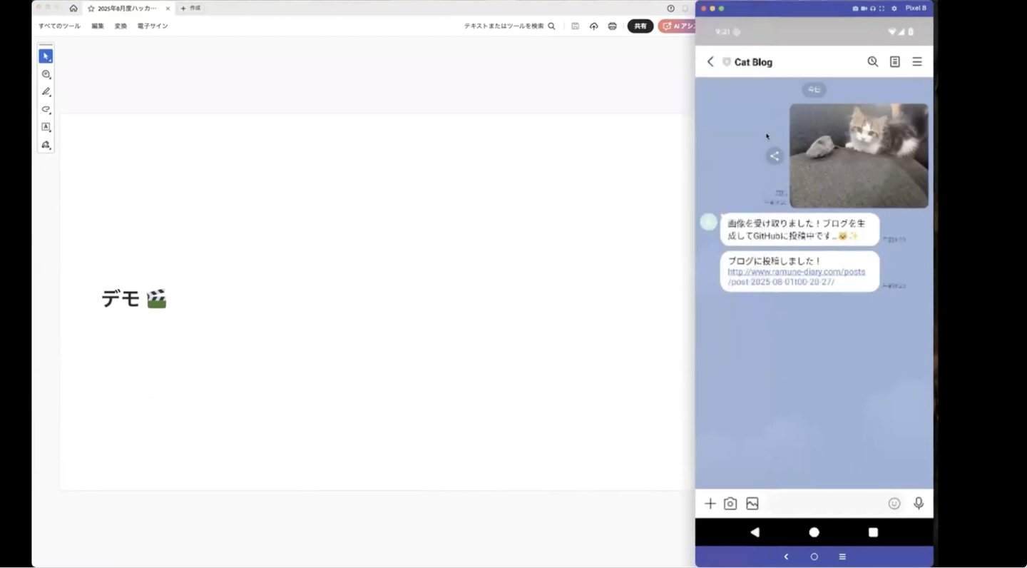 LINEで猫の写真を送るだけでブログ記事を自動生成・公開する画期的なシステムを開発。OpenAI Visionで画像を分析しタイトルと本文を生成、GitHub API経由でMarkdownをプッシュ、GitHub ActionsでHTML生成しGitHub Pagesで公開する自動化されたブログシステムです。AIによる技術の可能性を感じさせられました。
