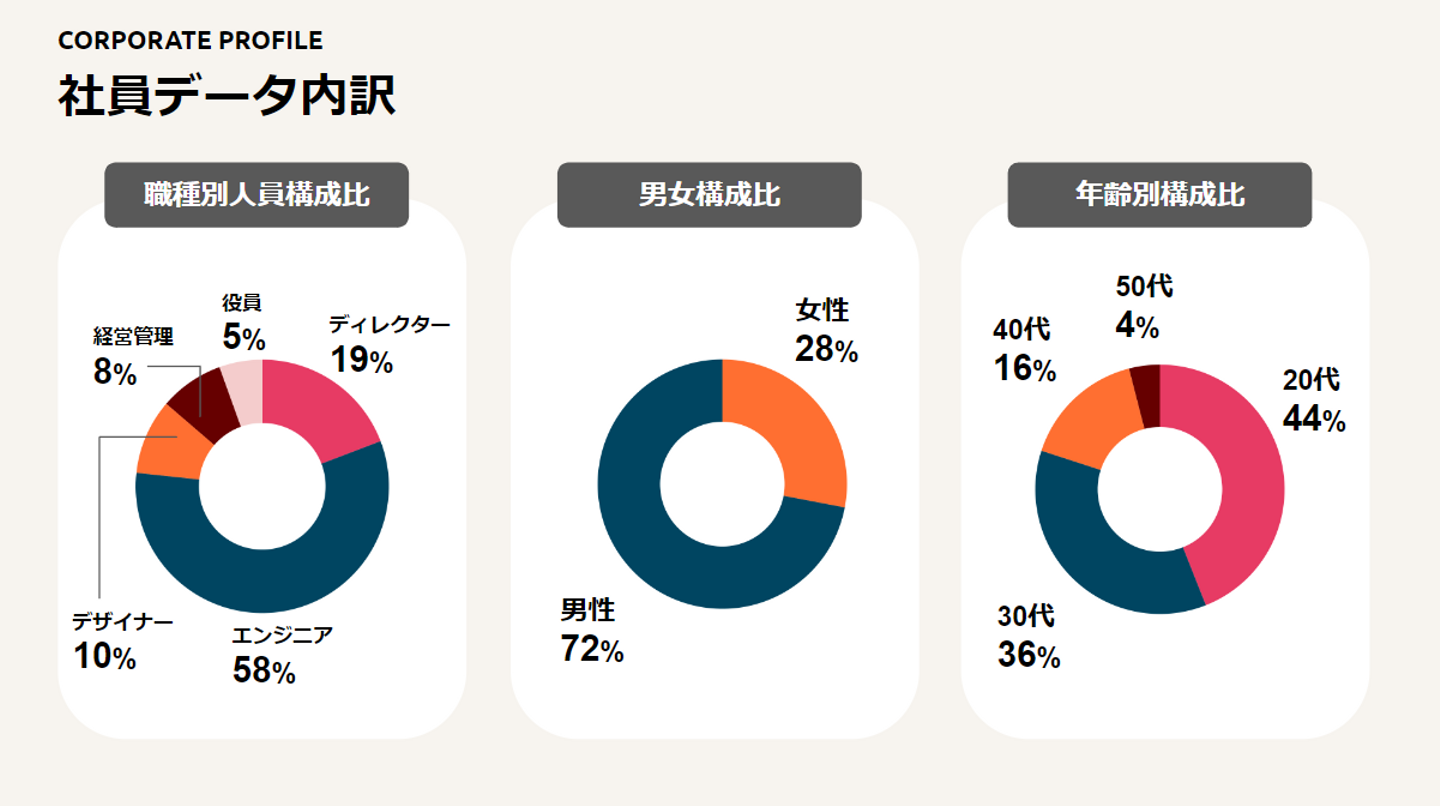 毎年新卒採用も積極的に行っているため、20代が多いですが平均年齢は33.3歳。年齢や役職にとらわれずフラットなコミュニケーションを取っています。
