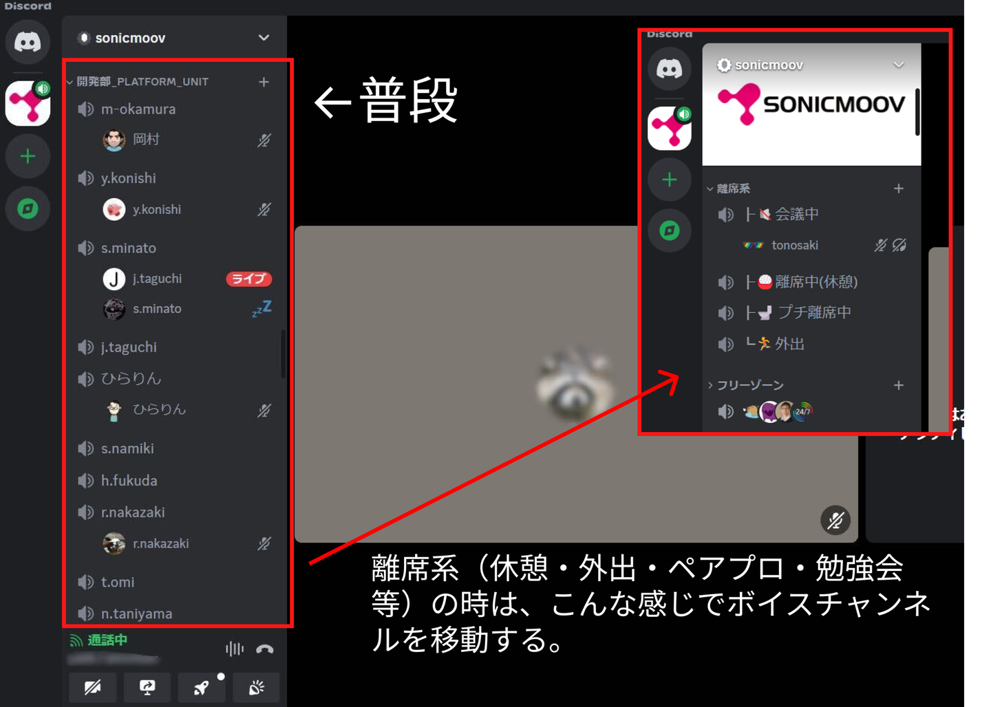 大信田:確かにそれはありますね。一応、会社のルールとしてはDiscordに入って、自席にいるのか、離席しているのかが分かるようになってはいますが、大事な作業の真っ最中である人とかもいると思うので、両方確認するようにしてますね。