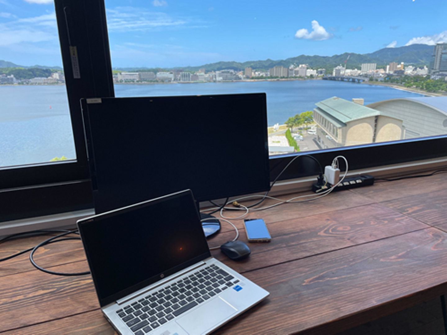 窓側に面した席もあるためレイクビューを堪能しながらの作業も◎。