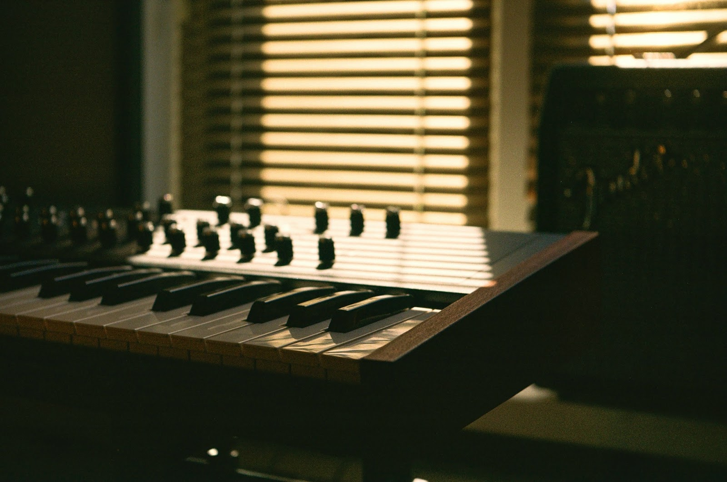 作業をする時はカーテンを閉めることで、音の反射を軽減させています。