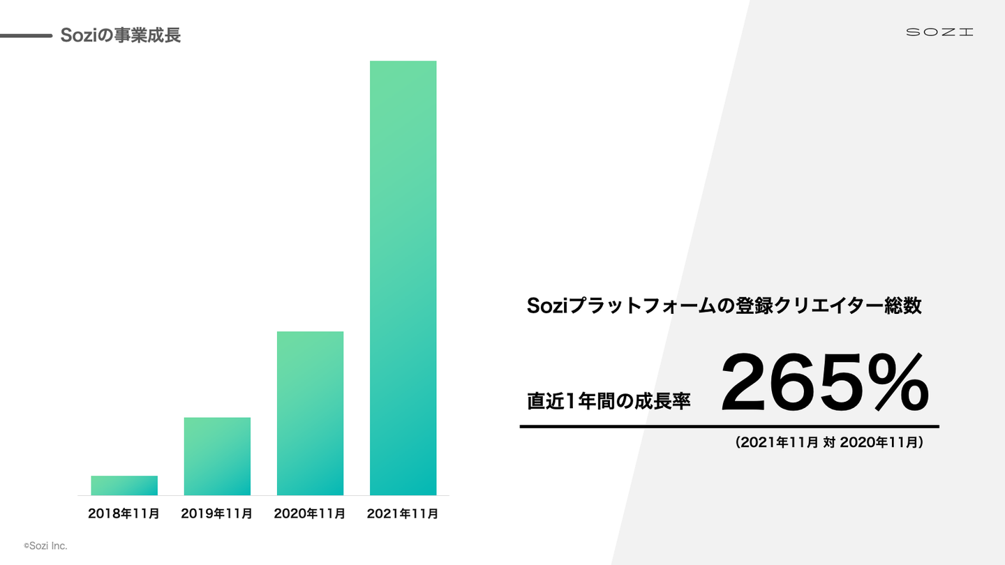 Soziのサービス利用者数が大きく成長している中、この成長を加速させるため、国内外へのプロモーション展開やサービスの改善・強化を行ってゆきます。また多様なクリエイターの活躍の場をつくるために、パートナー企業の皆さんと連携しながら新たな事業の展開も予定しています。