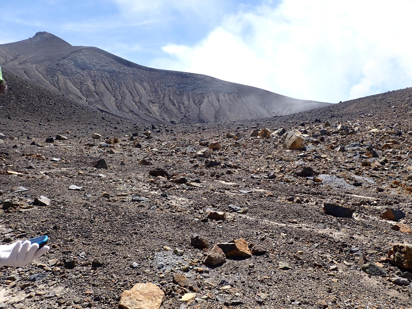 岩石採集のために登山をして火口の近くまで行ってみたり、