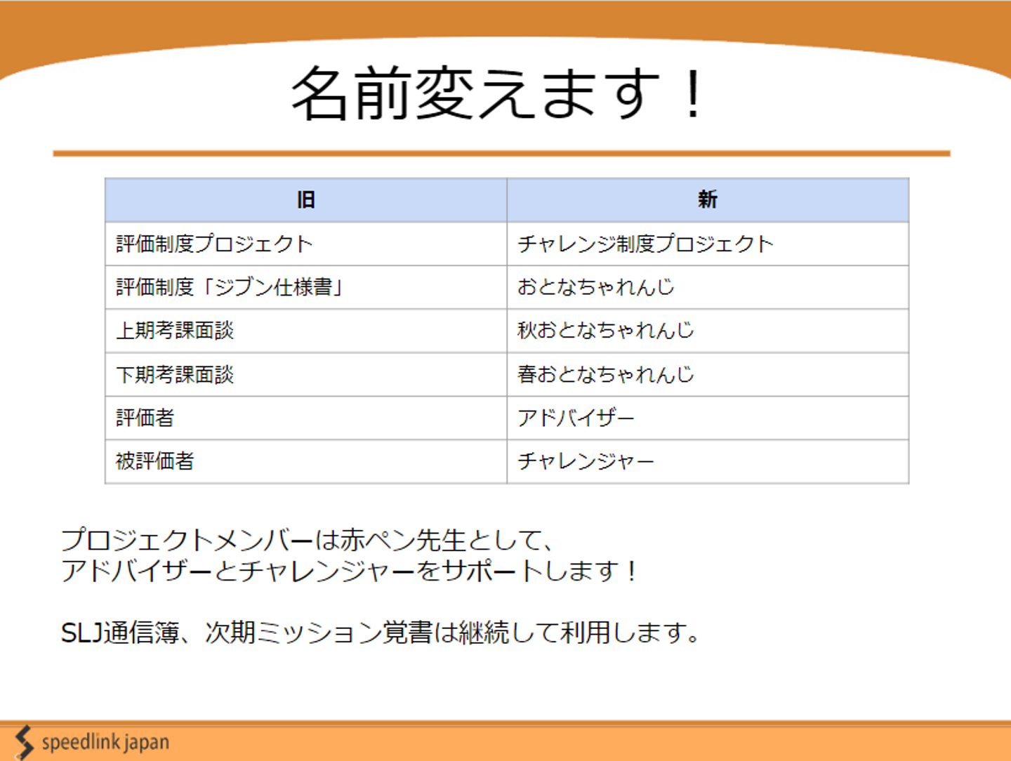 しかし、SLJのバリューである「果敢に挑戦する」をより体現できるように、またフランクな社風に合うように名称を「ちゃれんじ制度」に変更したという経緯があります!