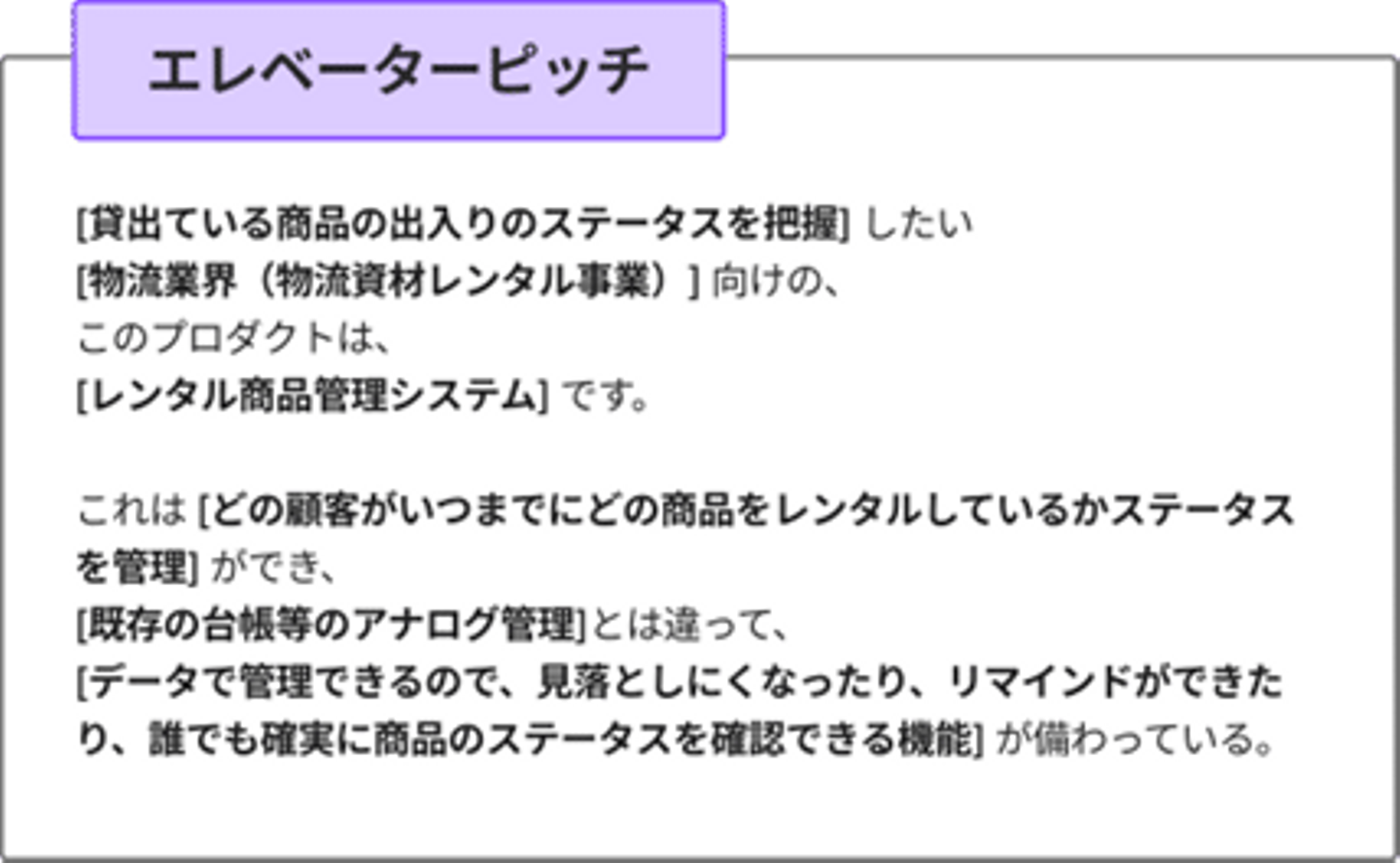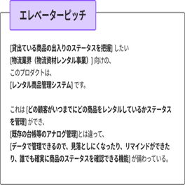 - エレベーターピッチ