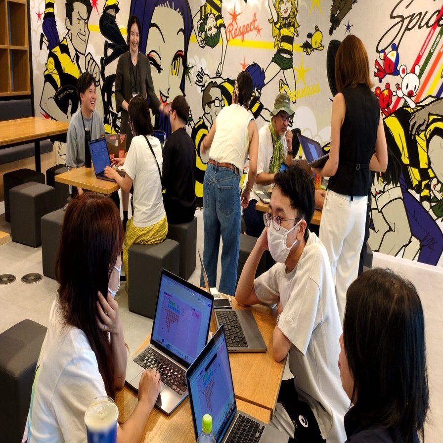 ハッカソン中は、「わいわい」という言葉がぴったりの活気に満ちた雰囲気でした。AI生成待ちの間に、他チームのアウトプットを偵察しに行く人も...(笑)