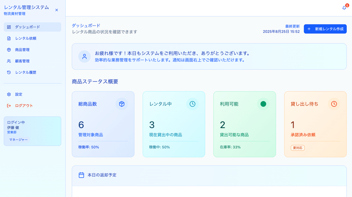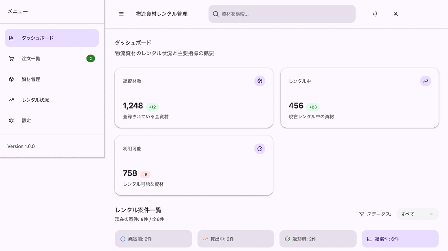 今回のお題:「資材のレンタルシステム画面を作ってください」