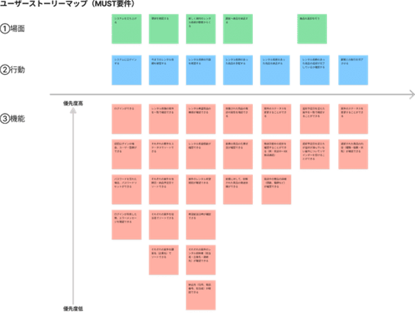 ユーザーストーリーマップで場面ごとの行動と機能について検討