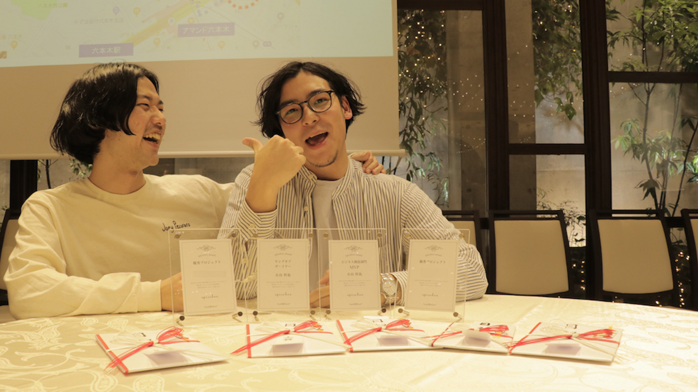 パーティ中盤には、アワードの発表も行われました。スパイスボックスでは半期に一度、社内外での活躍を讃えて表彰する制度があります。今回アワードを受賞した社員をご紹介!