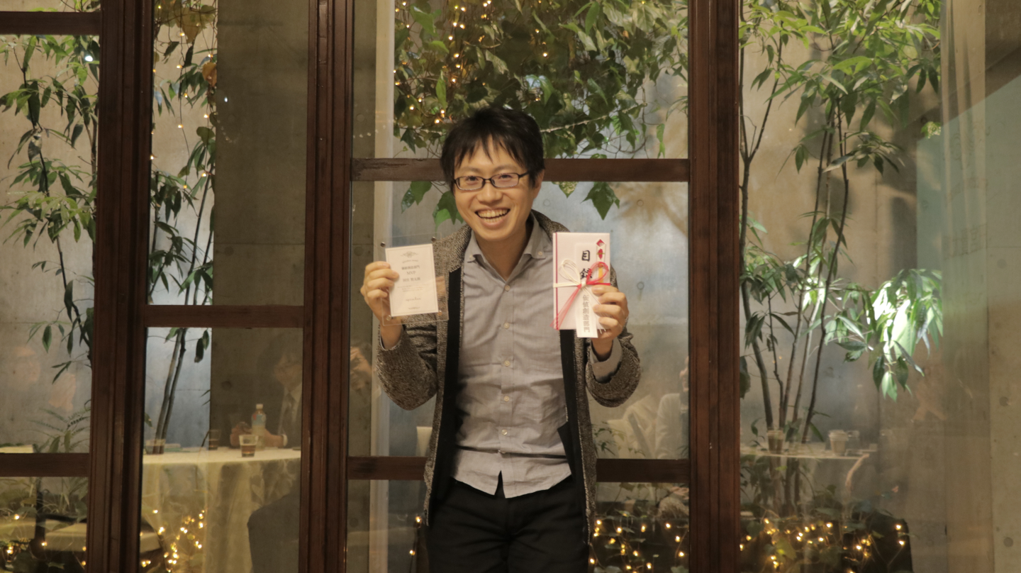 半期を通して最も大きなビジネスインパクトをもたらした社員に贈られる賞です。入社5年目のプロデューサー、小谷哲也が受賞しました。