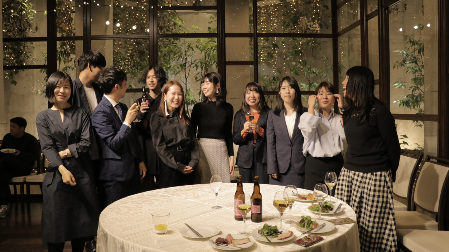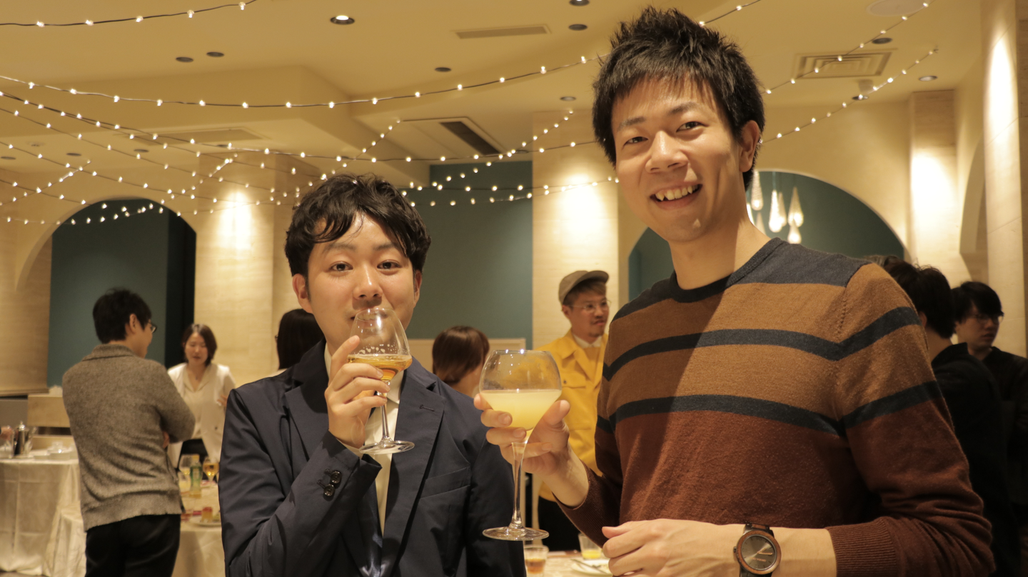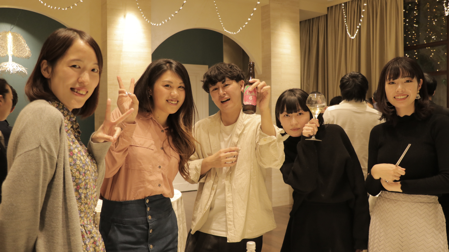 パーティが始まって間もなく、同日に入社した新入社員の紹介がスタート。ユニークな経験や発想を持っているメンバーばかりで、初々しさというよりはたくましさを感じます。一人一人の自己紹介記事も随時更新されますので、是非ご覧ください。