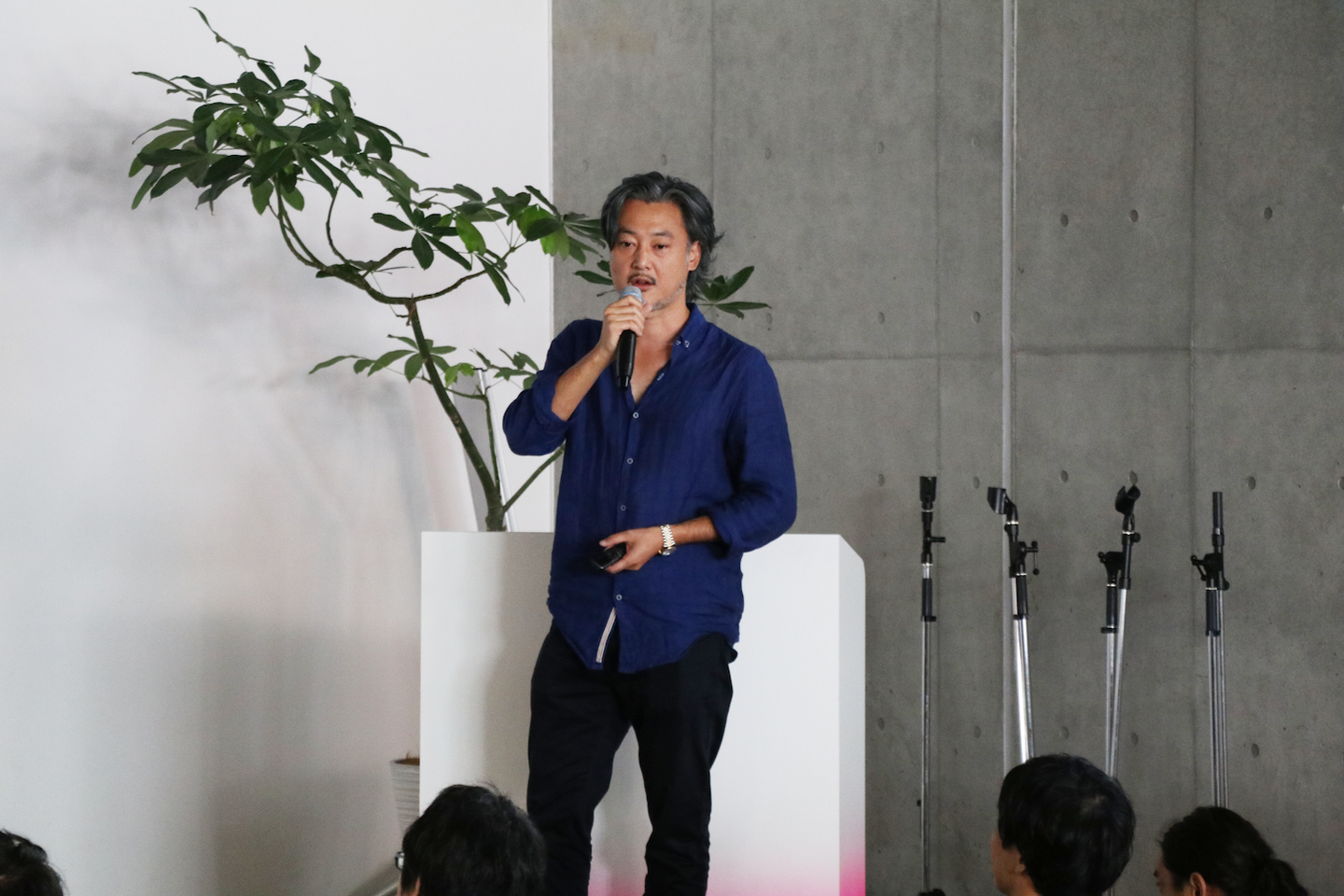まず最初に事業統括責任者の森竹より、2019年度上期の振り返りと2019年度下期の方針、事業面や組織面の3カ年計画の発表、また森竹自身の広告コミュニケーションに対する想いと、社員に向けてのメッセージがありました。