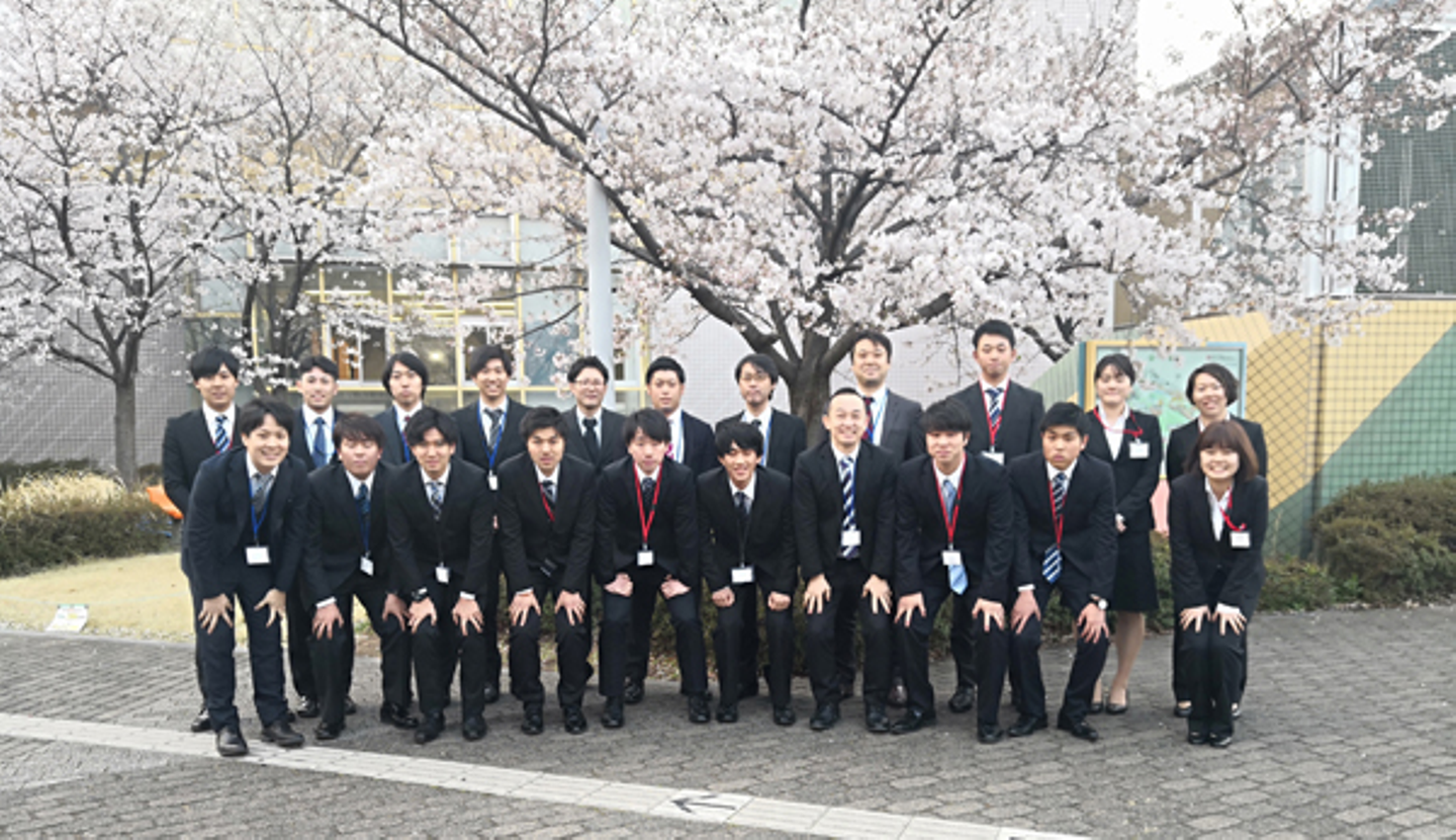 15名の新卒と幹部を合わせ、綺麗な桜の木の下ではいチーズ!(古いですかね?笑)