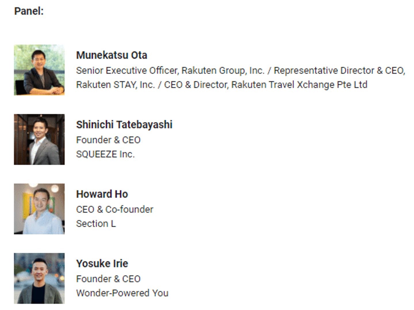 (左から)楽天ステイ 太田宗克氏、SQUEEZE 舘林、Section L Haward Ho氏、Wonder-Powered You 入江洋介氏