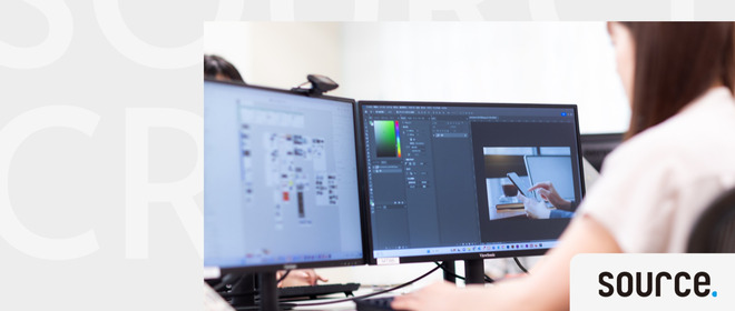 1つのことに特化するだけでなく、いくつかの領域をバランスよくこなせるスタッフが多いのが、ソースクリエイトの特徴です。デザイナーは「デザインだけ」といった考え方ではなくコーディングも行いますし、ディレクターも画像修正や簡単なコーディングを自ら行う場面が珍しくありません。