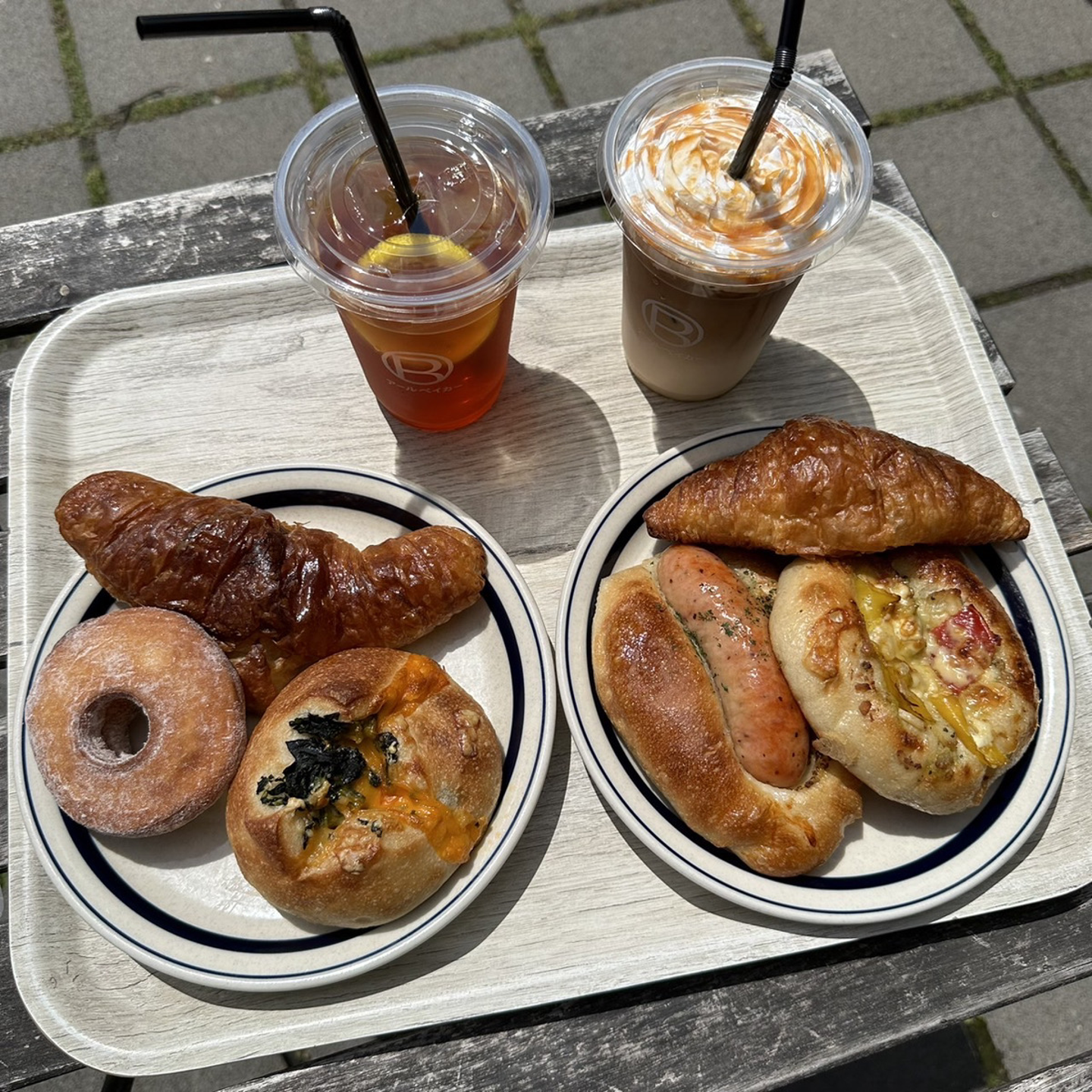 中でも、おすすめのお店は大阪城公園の中にあるパン屋さんです🥐本当にいろんな種類のパンがあって、選びきれずに4個も選んじゃいました。。(写真枠外に実はカレーパンも。。)